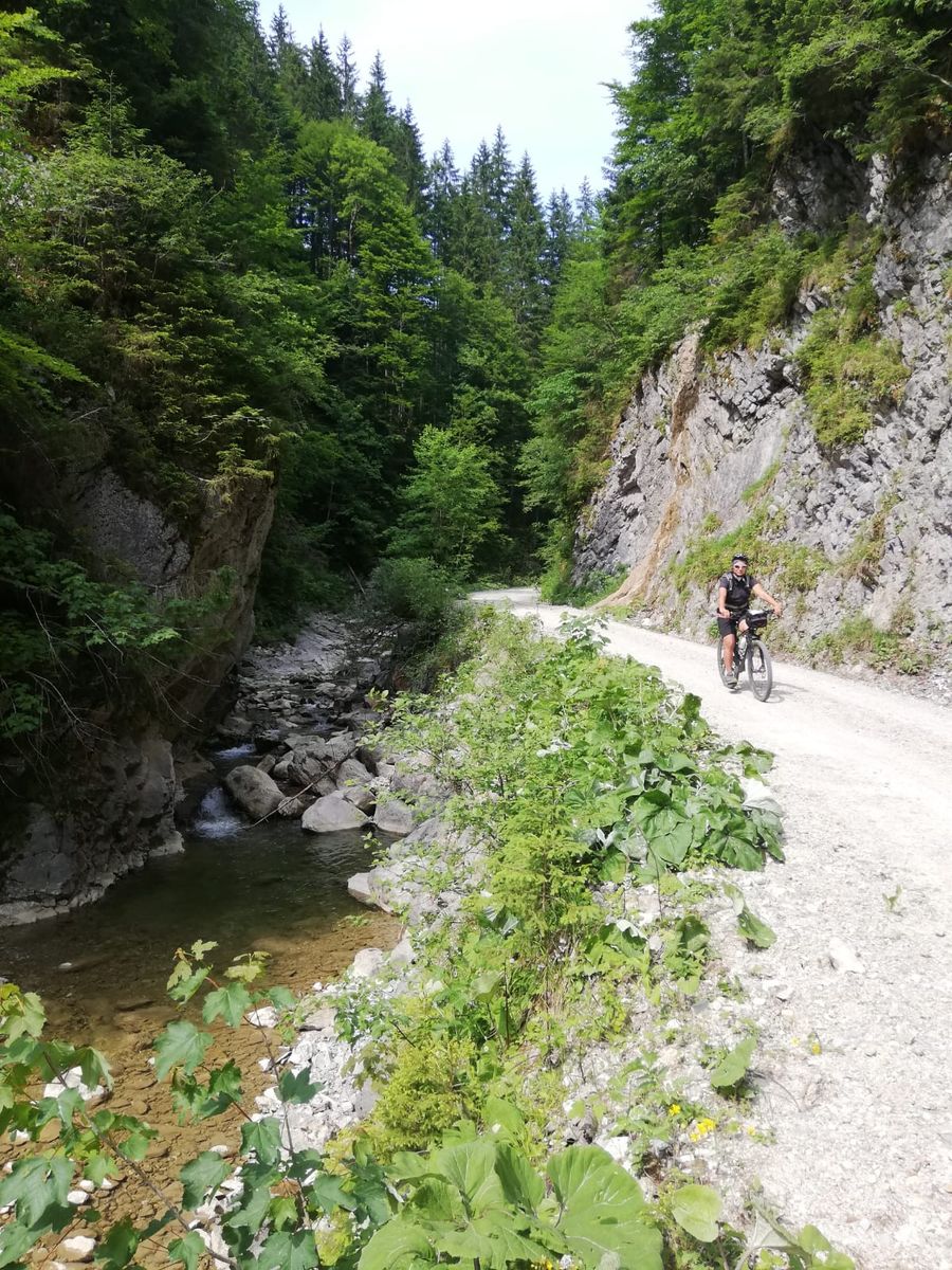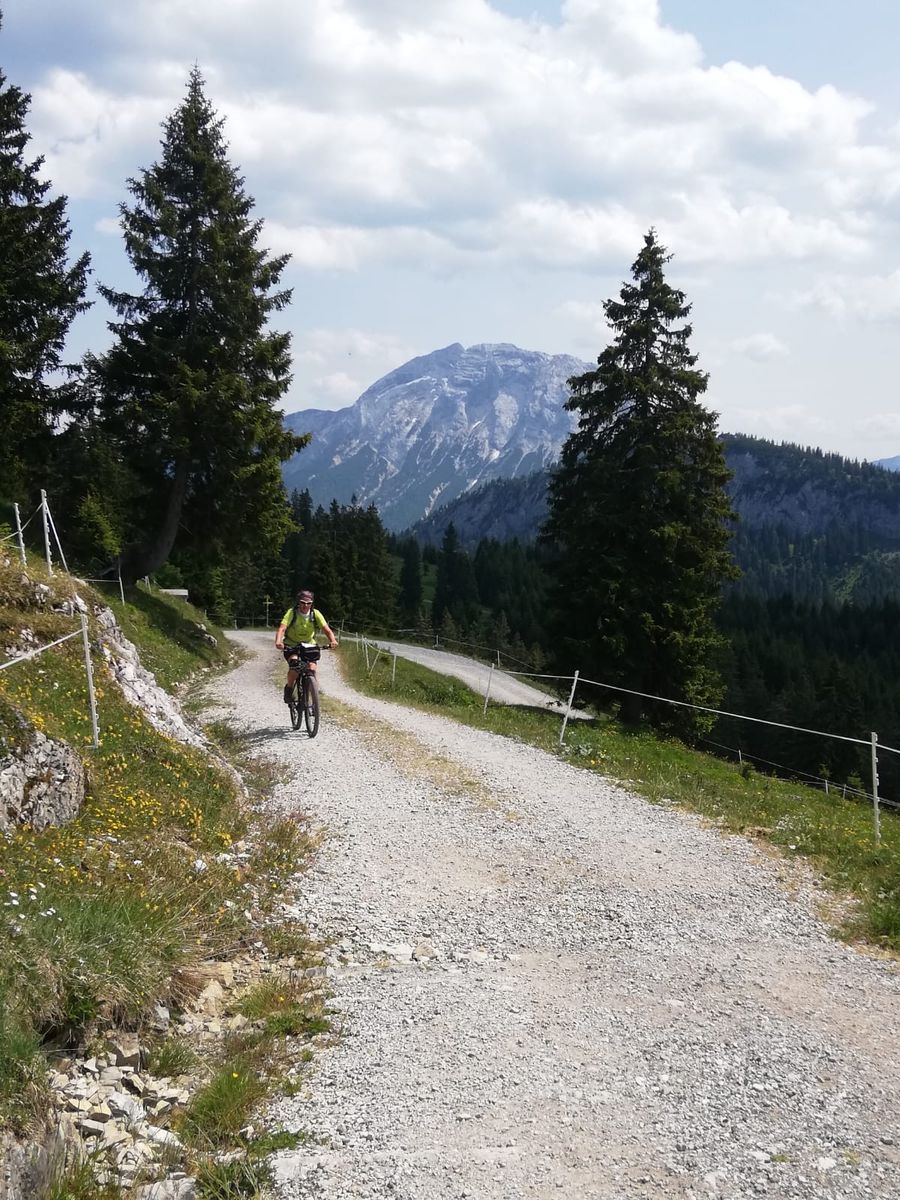 Von Achenwald durch das Klammbachtal zur Blaubergalm. Ausschließlich Forststraße, nie steiler als ca. 12%; der Weg ist, da alle falschen Abzweiger mit Radlverbotsschildern beginnen, nicht zu verfehlen.