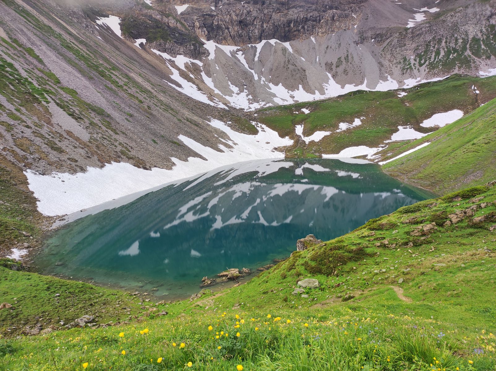 Die Anforderungen liegen maximal bei T4 (überwiegend leichter); Schneefelder gibt es noch einige, aber nur an harmlosen, flachen Stellen.