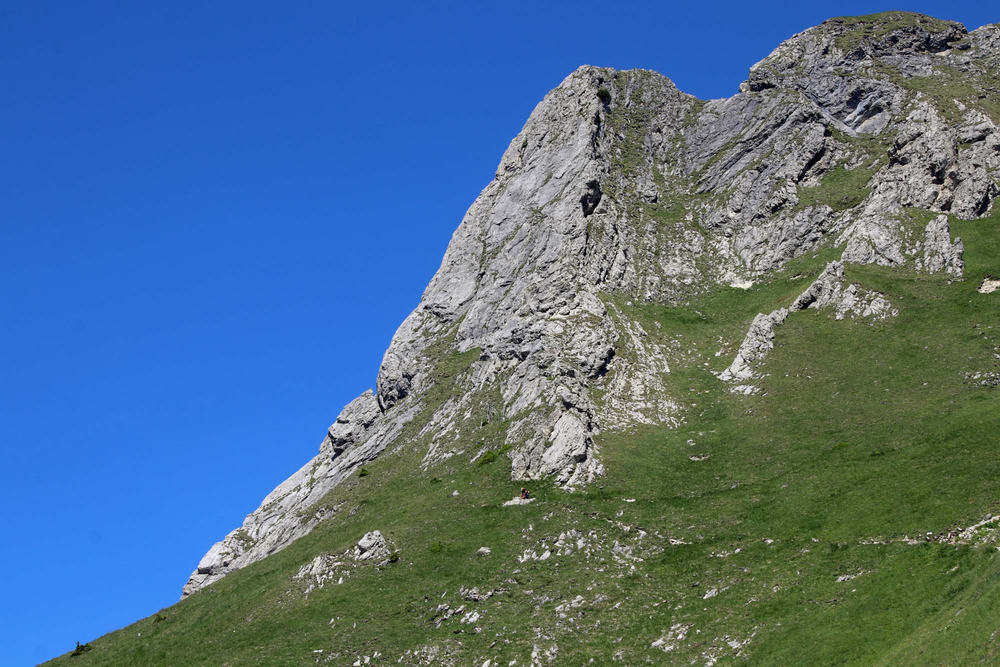 Besonders schön ist die Südwestkante (5 Seillängen) , die auch im IIer Gelände schönen, festen, griffigen Fels zu bieten hat. In Bezug auf die maximale Schwierigkeit der zwei Schlüsselstellen findet man im Internet Angaben von III+ bis IV+. Ich würde sie mit IV- angeben. Auch diese Stellen sind alles andere als abgespeckt.