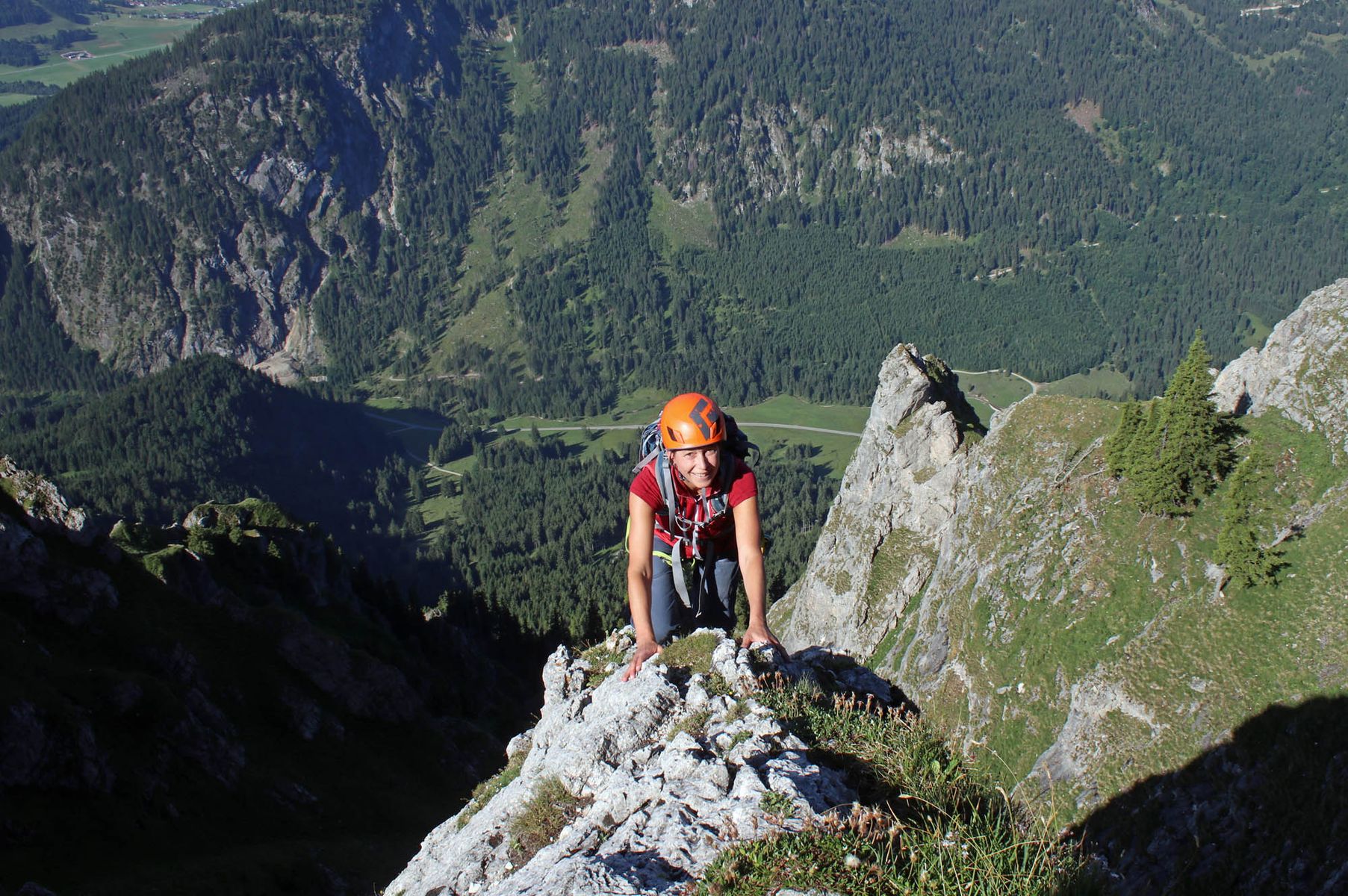 Als westlicher Eckpfeiler der Tannheimer Berge ragt der Aggenstein ziemlich exponiert in den Tirloer Himmel. An seiner Südseite gibt es ein paar nette Klettertouren, die Hardmover vielleicht in die Kategorie »Wandern mit Seil« einordnen würden. Ich stecke sie in die Berg-Schublade mit Aufschrift »Plaisir-Kletter-Schmankerl«.