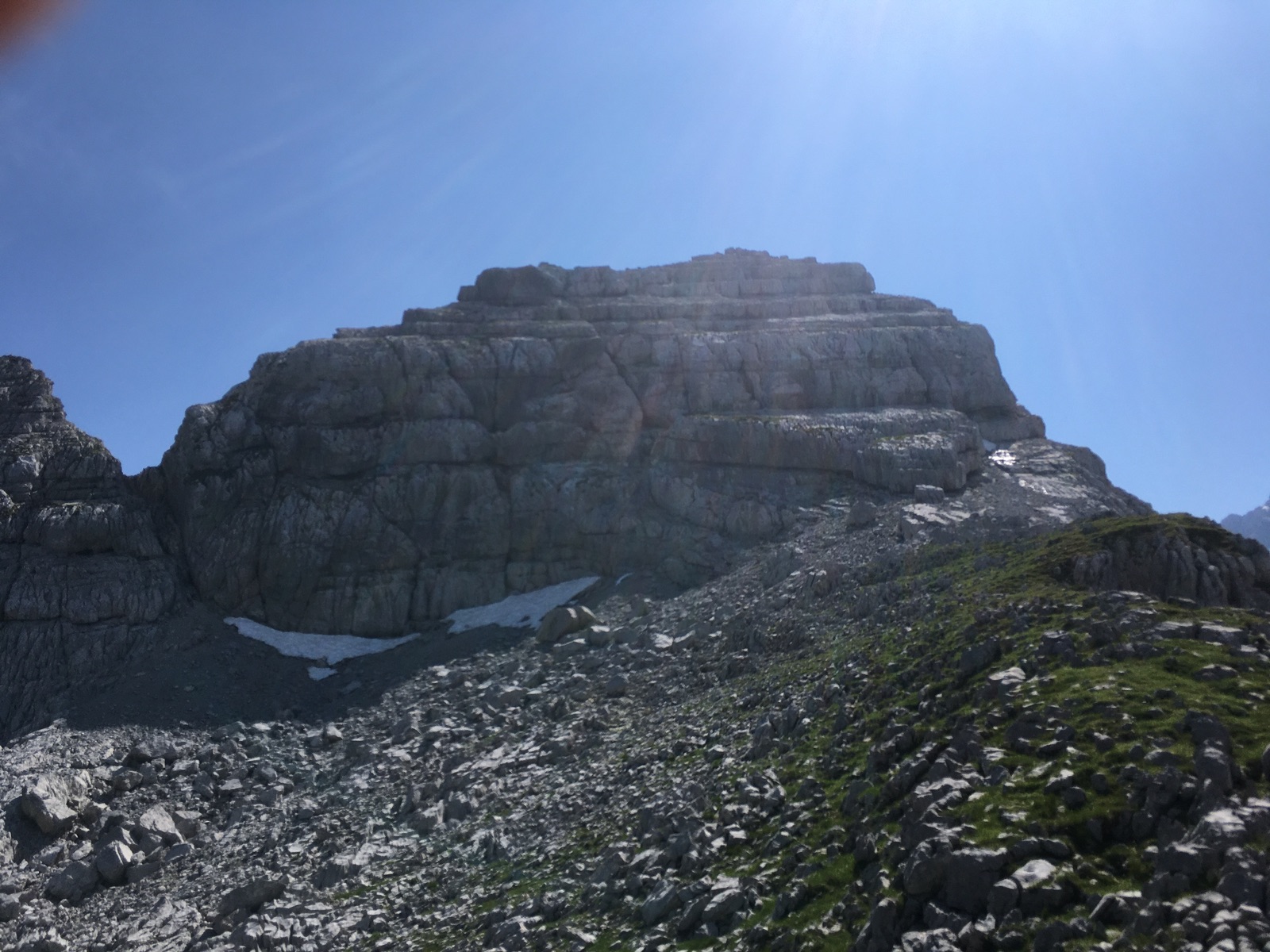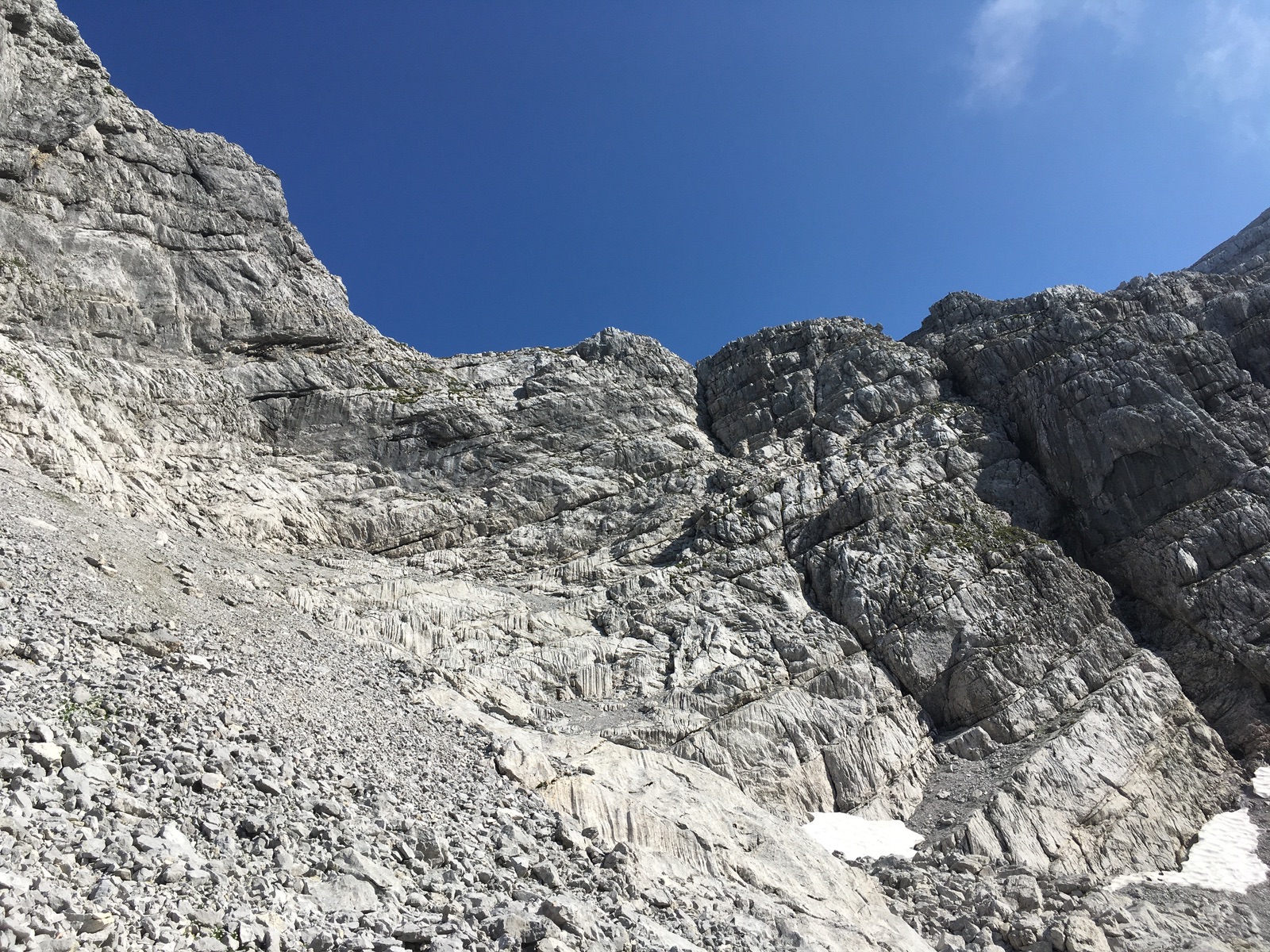 Die Felsstufe unter der Watzmannscharte von unten aus betrachtet: