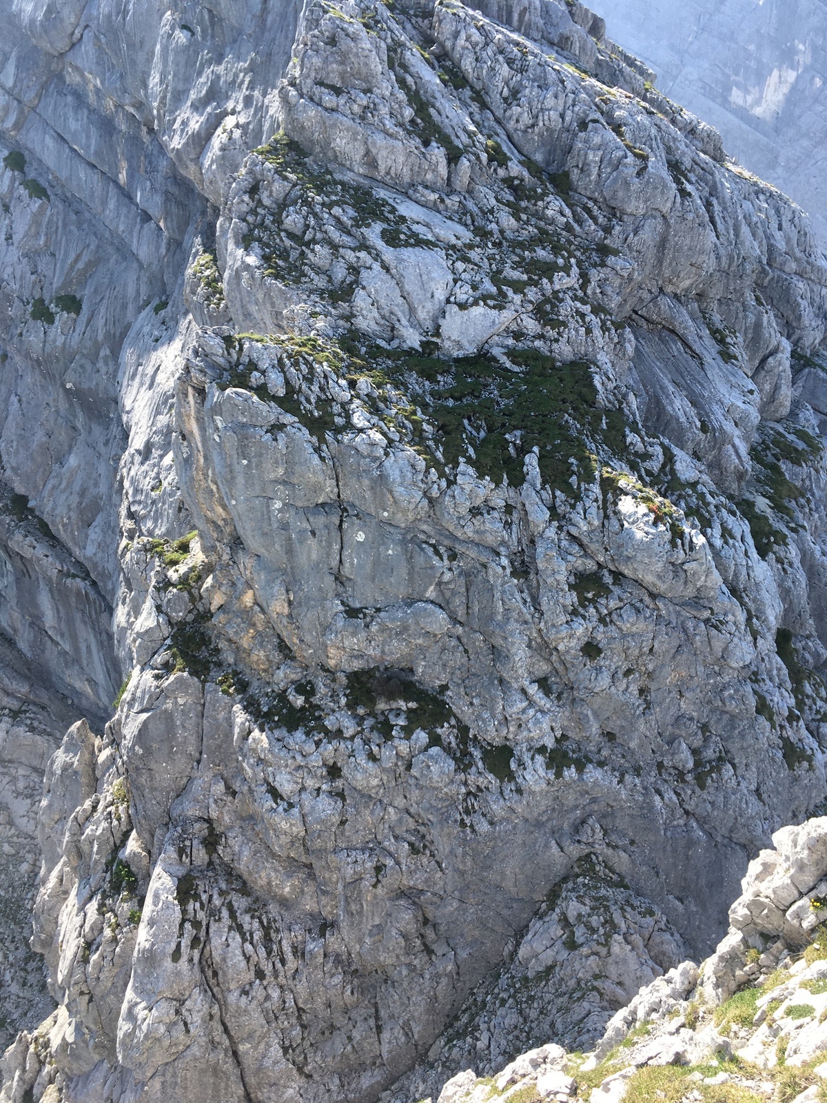 Information zur Wiederroute (Aufstieg zur Watzmann-Mittelspitze aus dem Watzmannkar): Es liegt auf dem ersten Band noch ein großes Schneefeld. Eventuell am linken Rand zu umgehen. Sonst braucht es möglicherweise Steigeisen. Auch weiter oben noch etwas Restschnee und auch beim Einstieg. Insgesamt dürfte es nochmals anspruchsvoller sein als auch schon. Eventuell besser noch einige Wochen warten, bis der Schnee ganz weg ist.