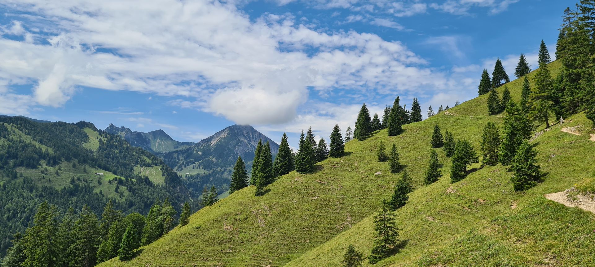 Was mir besonders gefällt: Diese Tour eröffnet eine ganz eigene Perspektive aufs Rotwandgebiet. Der Hochmiesing sieht von dieser Seite wie ein spitzer Kegel aus.