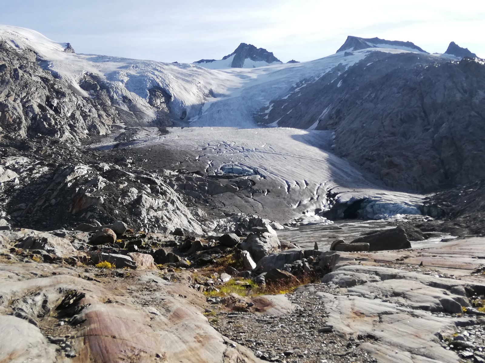 Abwärts wie Aufstieg, wobei uns unsere Steinmänner im Gletscherschliffgelände eine gute Orientierungshilfe waren.