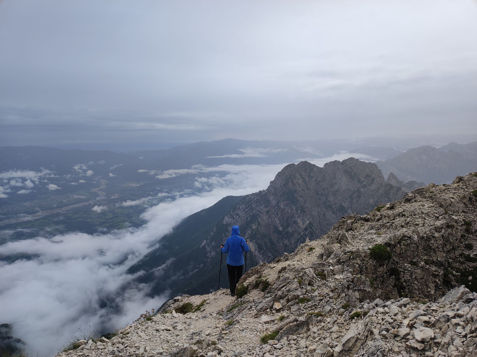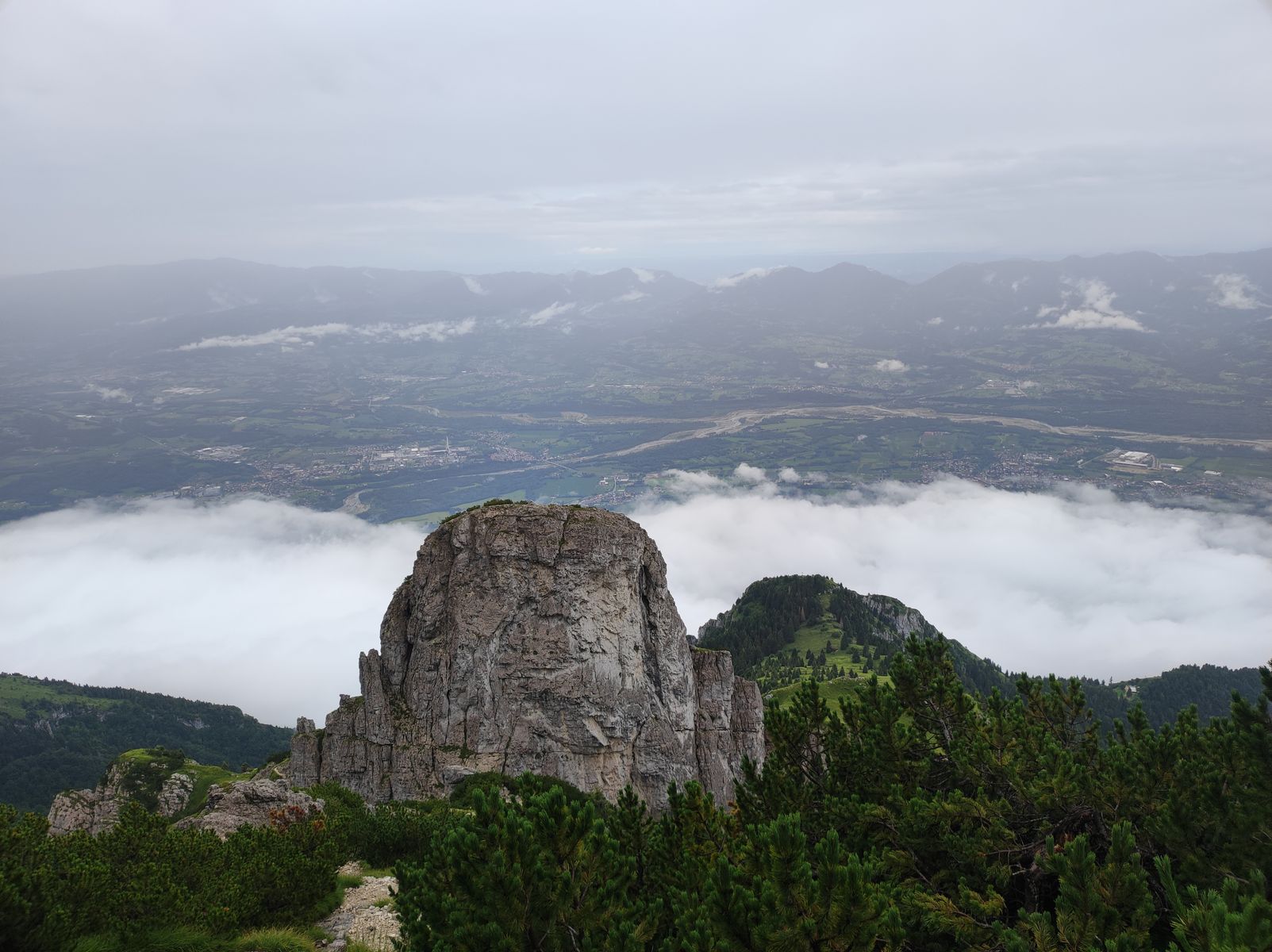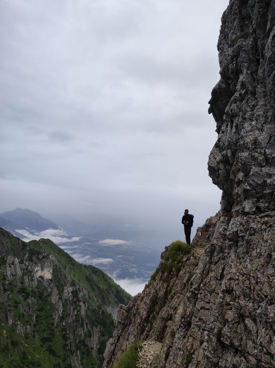 Gestern sind wir in der Früh in die Dolomiten gefahren und haben als erste Tour den Monte Pizzocco gemacht, einen der besten Aussichtsberge in den Südlichen Dolos. Mittags waren wir vor Ort und sind über die Forcella des Intrigos auf den Gipfel. Abstieg dann über das Bivacco Palia. Die Tour ist nicht besonders schwierig (meist T3), aber recht steil.