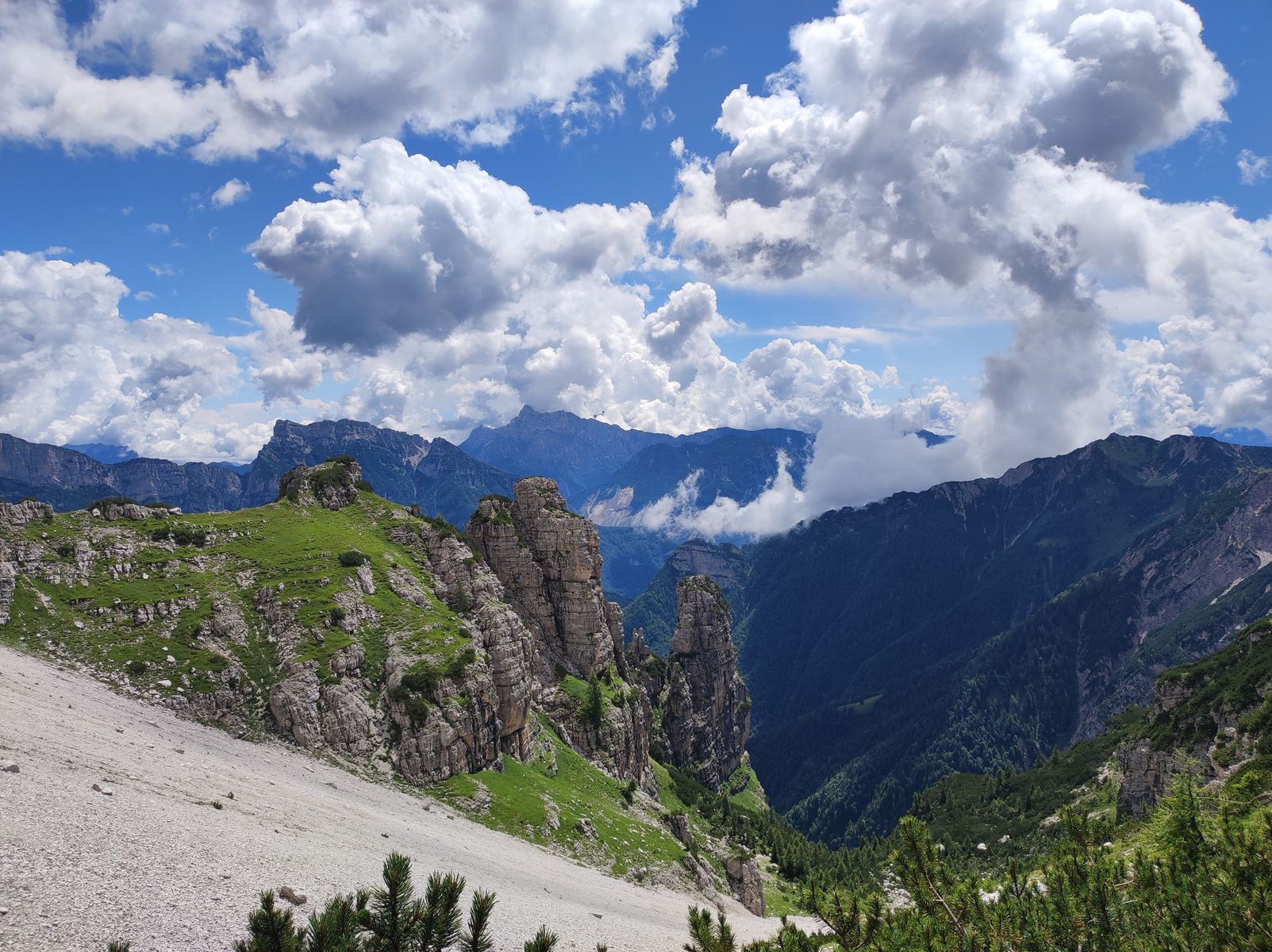 Die Landschaftseindrücke sind einfach famos: Zunächst die Civetta und später der nahe Monte Pelmo dominieren lange Zeit das Panorama. Am Gipfel dann umfassende Dolomitenschau: Antelao, Sella, Marmolada und und und.