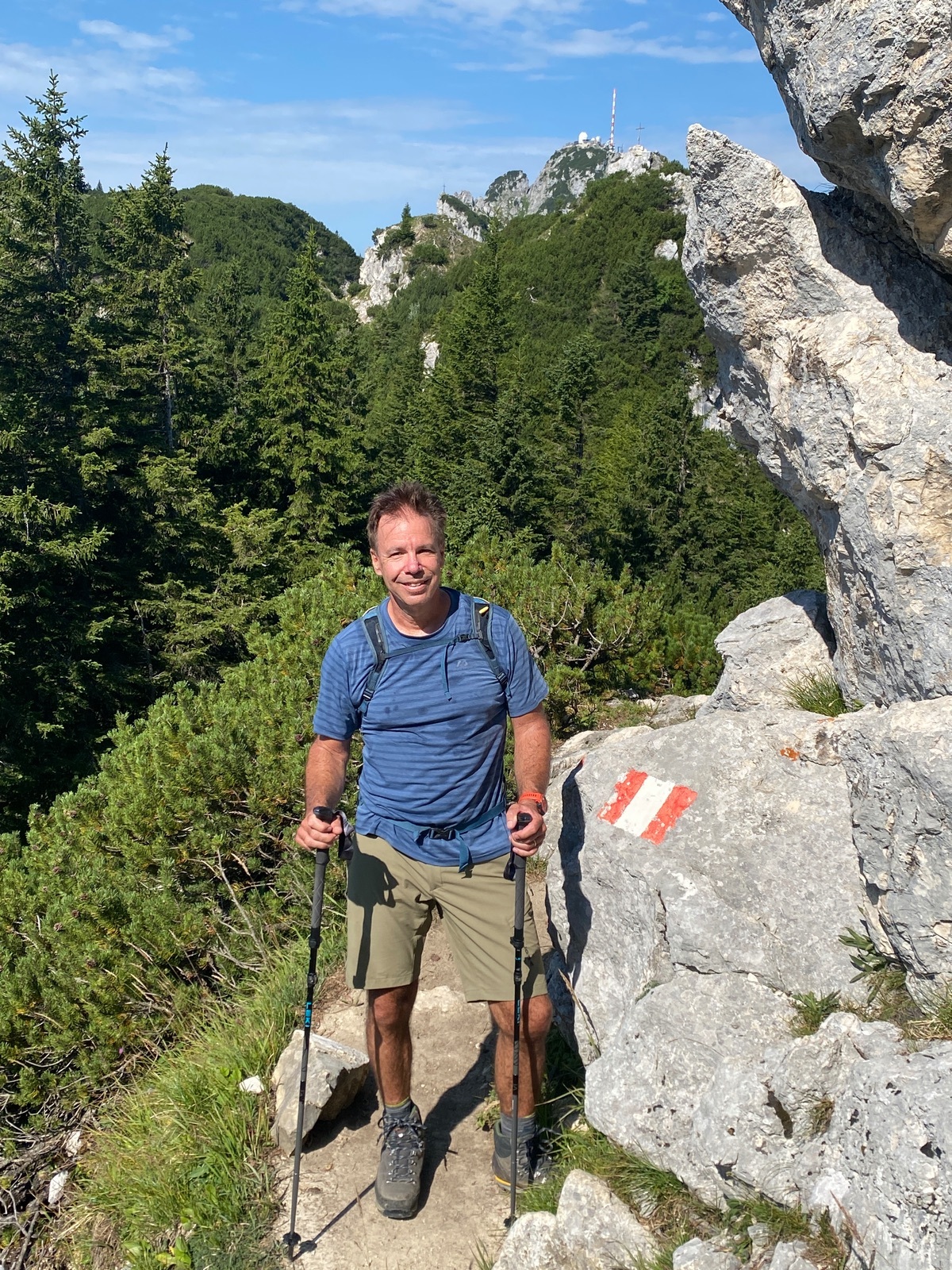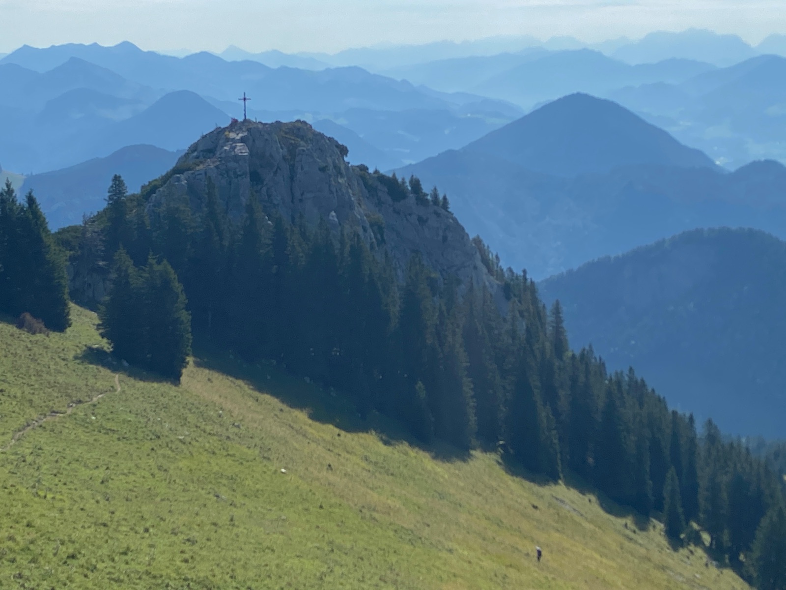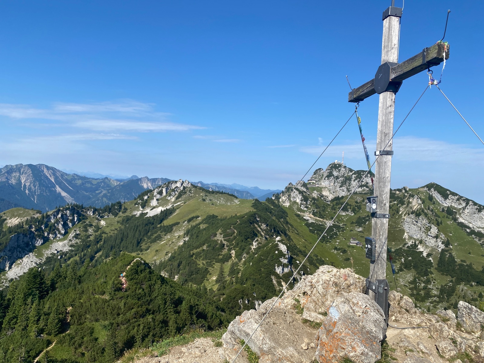 Vor diesem Hintergrund lautete der Plan heute: früh in die Berge und dann was eher Kurzes. Mit meiner Frau machte ich die Runde aufs Wildalpjoch vom Sudelfeld aus. Aufstieg via Schweinsteiger Alm und Wildalm auf dem eher selten begangenen Heidi-Weg hinauf zum Sattel östlich der Käserwand. Unter dieser entlang, vorbei an allerlei eingebohrten Sportkletterrouten. Am Gipfel erhielten wir Besuch von einem größeren Bundeswehrtrupp. Abstieg dann hinunter zum Seewandköpfl und weiter zu den Almen beim Lacherkar. Pünktlich um 12 Uhr waren wir wieder am Sudelfeld - erste Schäfchenwolken deuteten den obligatorischen Nachmittagsregen an…