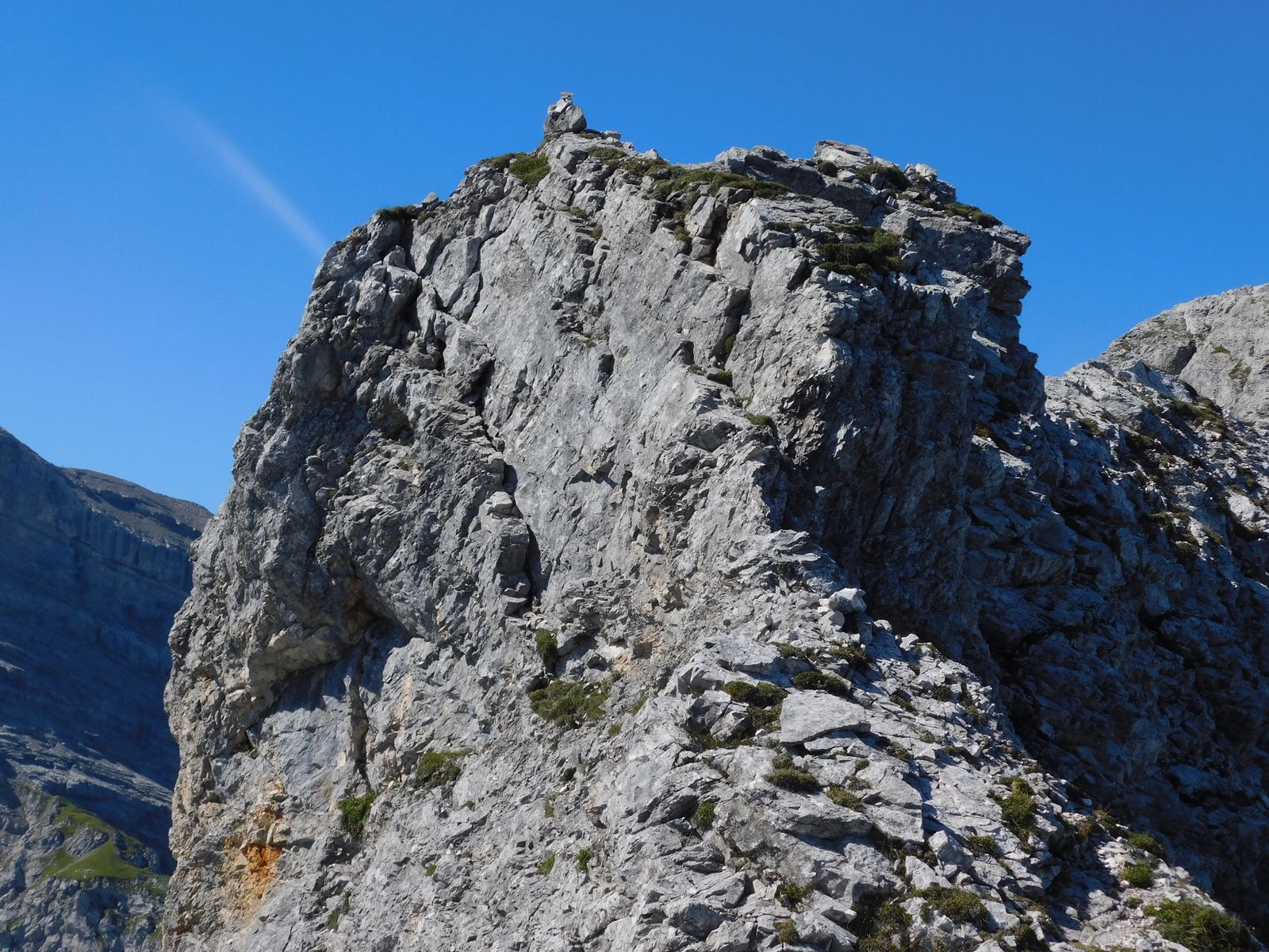 - Felszacken in der Mitte, den man überklettern muss: wird oft als "die" Schlüsselstelle angegeben, fand ich aber in meiner Richtung problemlos zu überwinden