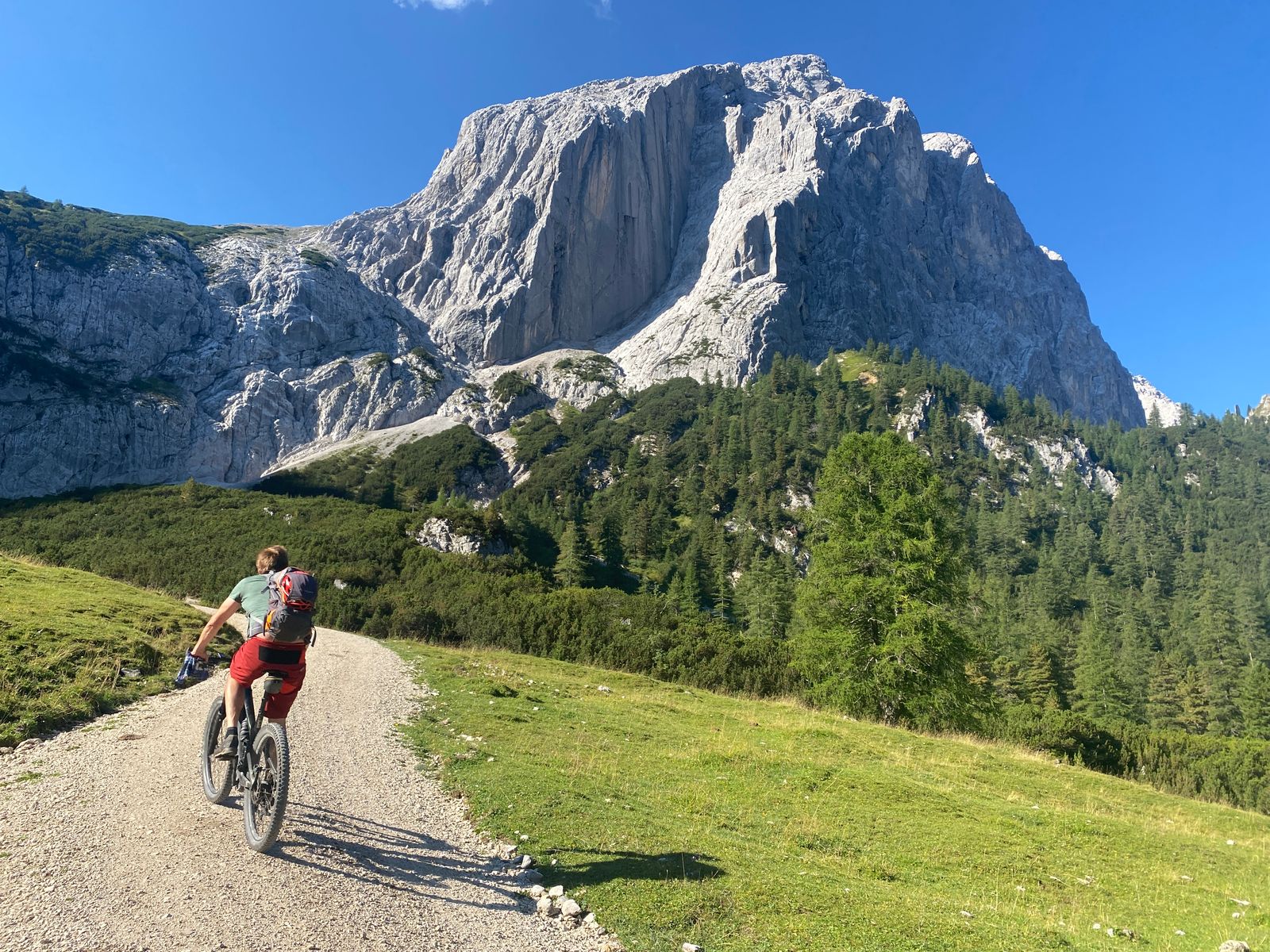 Naja. Beim der MTB-Anfahrt zum Hallerangeraus wechselten wir schon nach einer Viertelstunde in den T-Shirt-Modus - und bei dem blieb es für den Rest des Tages. Auch in über 2600 Metern Höhe war es zur Mittagszeit sehr warm. Vorteil: weniger Gepäck im Rucksack (keine Regenklamotten).