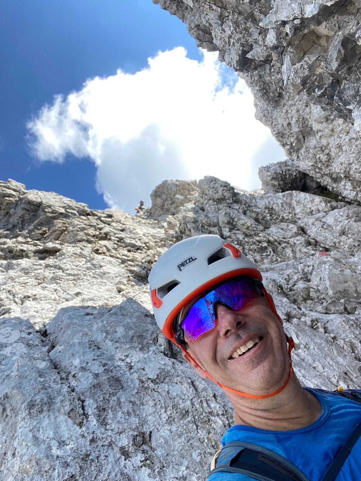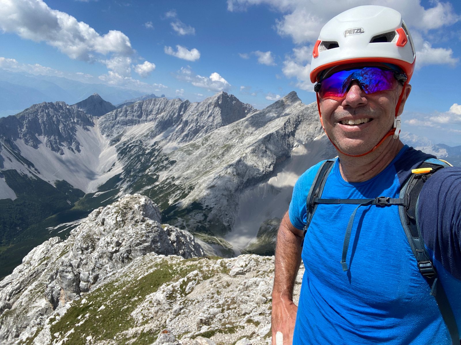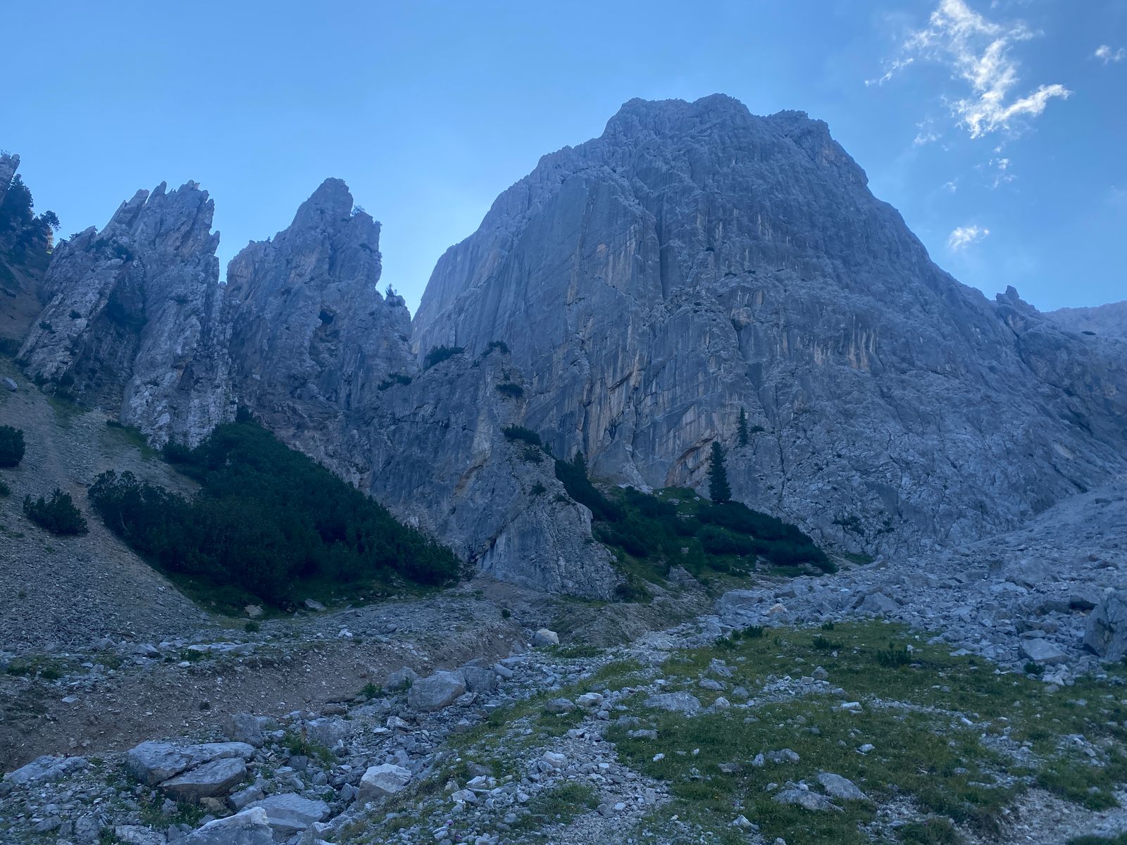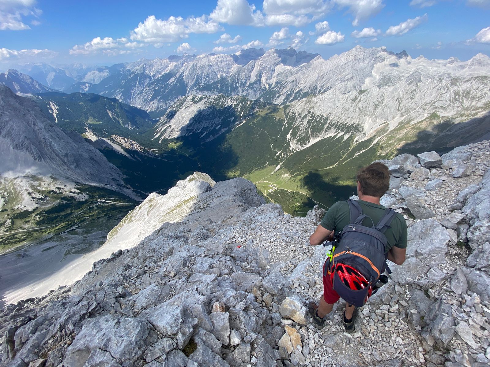 Nach dem Radldepot am Hallerangerhaus sind wir zunächst hinauf zum Lafatscher Joch gewandert, von dort den Südwestgrat hinauf (am Schluss kurze Kletterstellen, I bis II UIAA), nach der Mittagspause den teils mit Drahtseilen bestückten Nordwest-Normalanstieg runter.