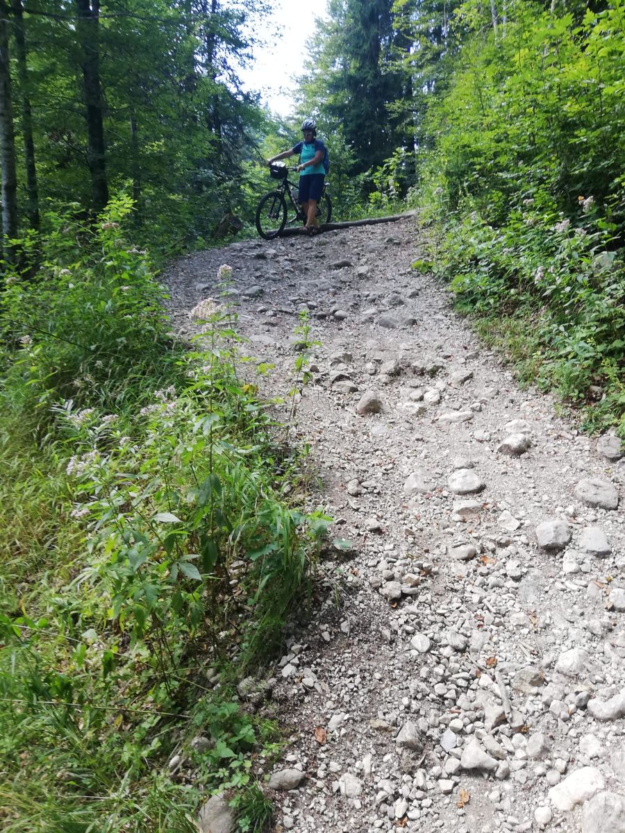 Harmlose Forststraßenrunde. Nur das Stück nach der Bayralm ist zunächst steinig bis felsig, zum Schluss führt der Weg etwa 30-40Hm steil bergab zum Bach mit Brücke (Schiebestrecke rauf wie runter). In diesem Steilstück werden derzeit Holzbalken, wohl zur Befestigung, quer über den Weg verlegt.