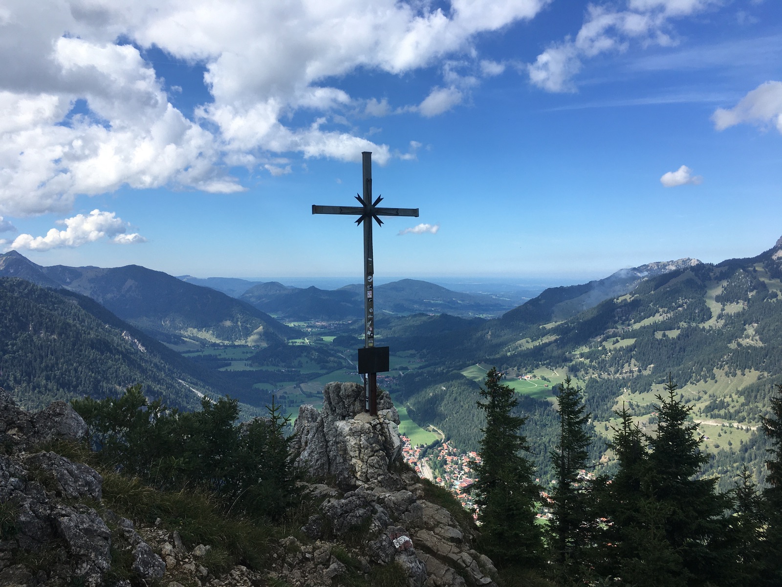 Das Gipfelkreuz des Vogelsang thront über Bayrischzell, ist aber nicht am höchsten Punkt: