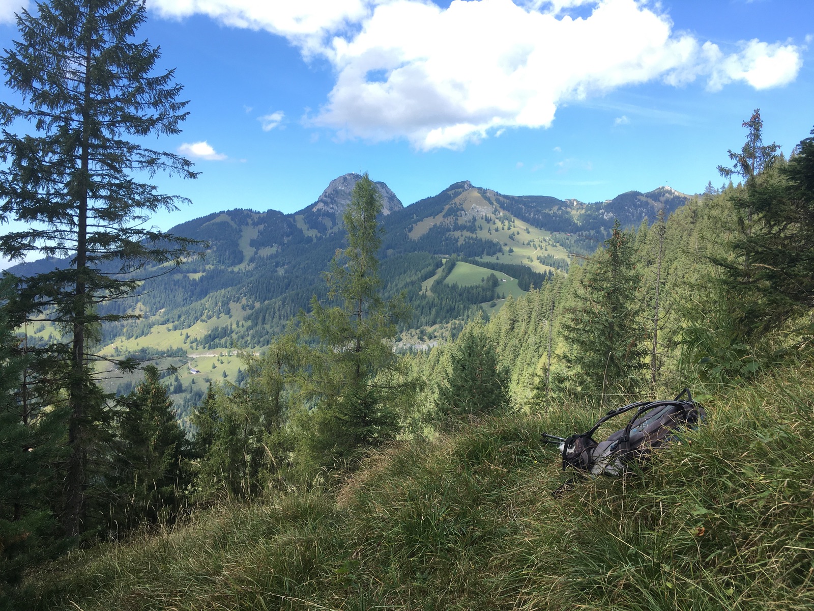 Für den Abstieg bin ich bis zur Wegverzweigung auf ca. 1.400 m herunter wie zuvor herauf, dann dem direkten Weg nach Bayrischzell gefolgt und auf ca. 1.300 m auf den mittleren Verbindungssteig abgezweigt, der sehr schön mit kurzem Auf und Ab den ganzen Berg Richtung Bayrischzell quert. Abstieg dann über den mittleren Steig Richtung Tanner-Alm und durch den Ort zurück.