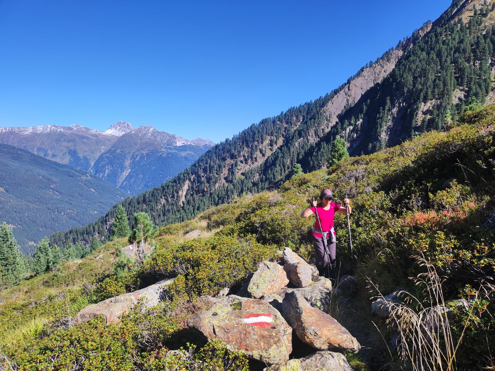 Route: Neugasteig - Mischbachalm - Glücksgrat - Bacherwandalm - Falbesoner Nockalm (Verbindungssteig mittlerweile wieder begehbar) - Doadler Alm - Falbeson - mit dem Bus zurück (letzte Fahrt 18.11 Uhr, aber der Fahrplan ist nur noch bis Ende September gültig - also vorher besser noch mal nachschauen).