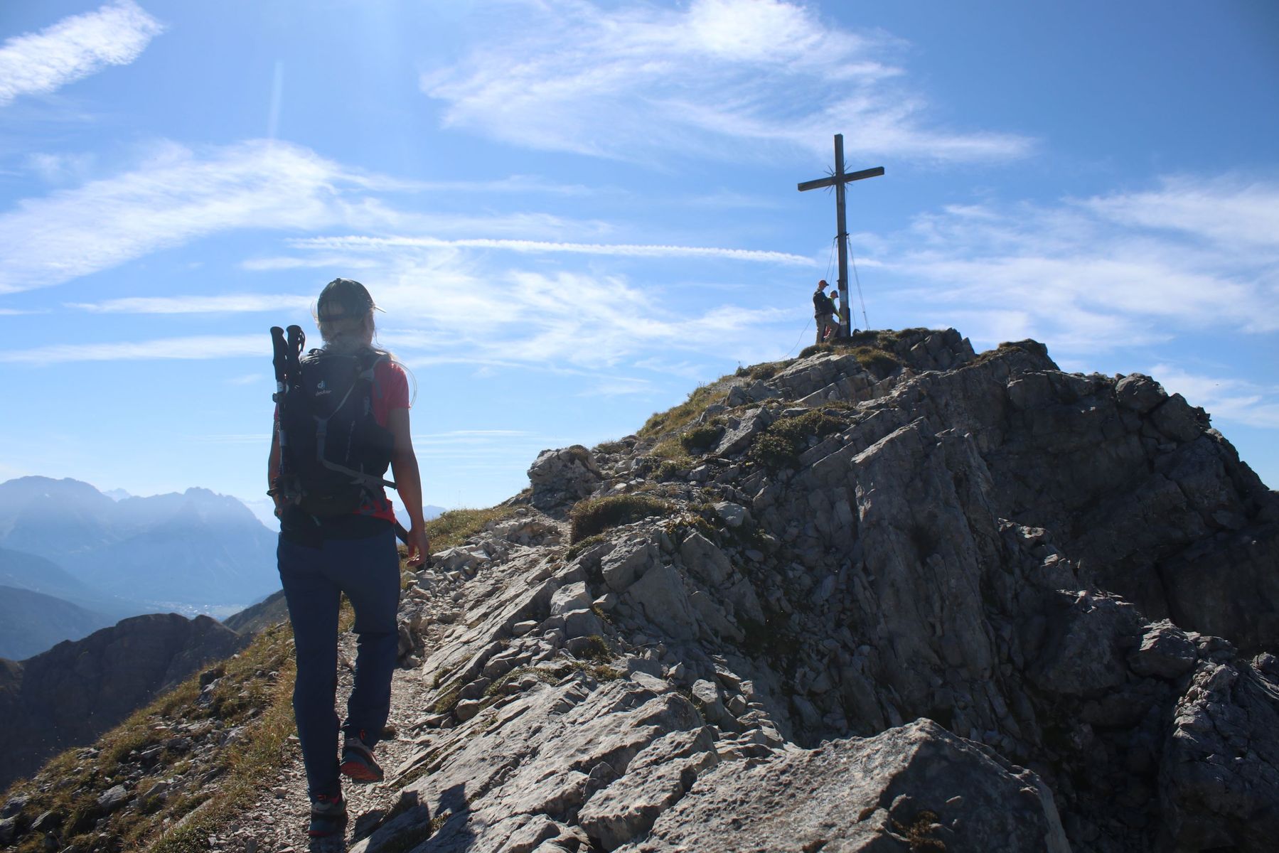 Der Anstieg zum Kuchelberggrat ist übrigens nicht beschildert und auch nicht in der AV Karte eingezeichnet. Hat man den richtigen Abzweiger aber gefunden, ist der Weg aber im Bergwald deutlich und am Grat selbst von der Topografie her vorgeben. Der An- und Abstieg zur Kreuzspitze ist dann wieder markiert.
