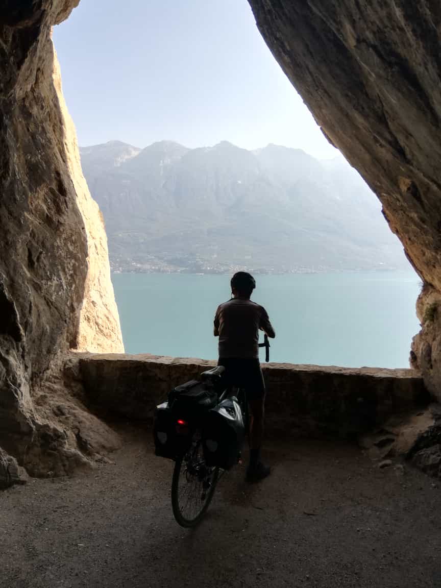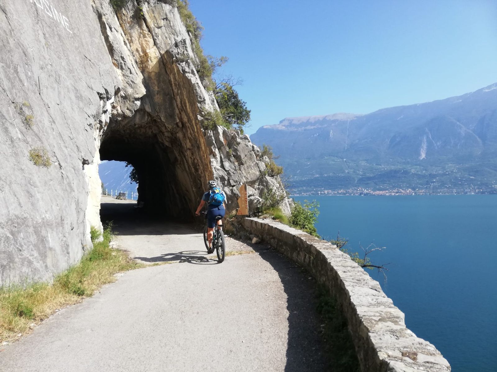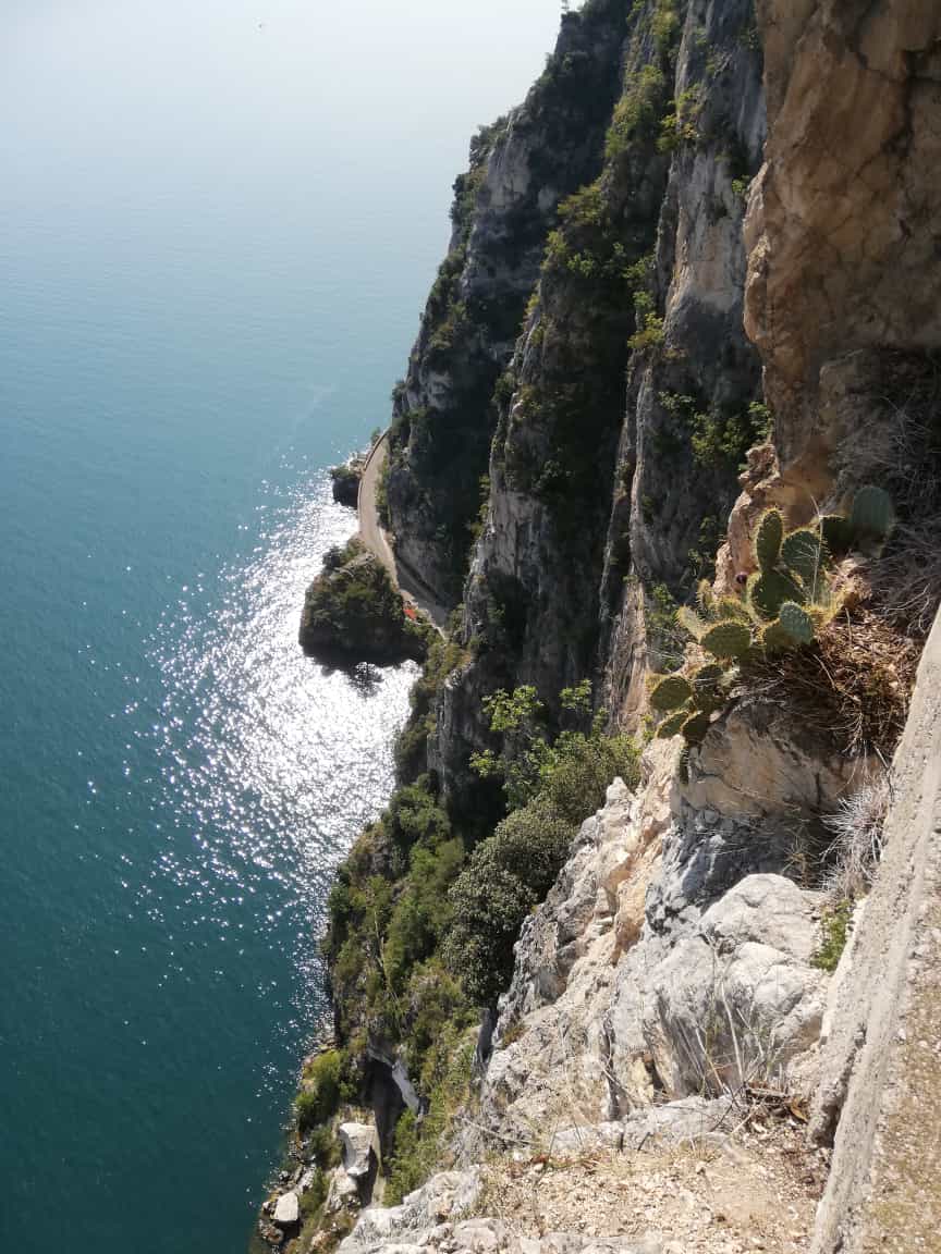 Die Strada della Forra ist eine Autostraße, die durch eine Schlucht ungefähr von Campione nach Pieve hoch führt. Trotz Auto- und Motorräderverkehr lohnt es sich meiner Meinung nach auch mit dem Rad hoch zu fahren, da die Route recht spektakulär ist und man als Radler überall halten und schauen kann. Außerdem können Teile der Straße, insbesondere der einzige lange Tunnel, auf der alten Gardesana umfahren werden. Parken in Campione kostet 9€/Tag. Die Tour beginnt direkt neben der Tunneleinfahrt Richtung Riva und führt erstmal knapp über dem See zur ersten Kehre der Autostraße. Bis zum langen Tunnel auf dieser weiter, am Tunneleingang nach rechts und um den Tunnel (etwa 700m) außen rum. Dann immer auf der Straße weiter, erst spektakuläre Tiefblicke, später durch die Schlucht bis zu einem Restaurant. Ab hier wieder Gegenverkehr und normal breite Straße bis Pieve. Von Pieve über kleine Nebenstraßen weiter nach Mezzema und zur Bocca di Nevese hoch. Wieder bergab zur Alpe Garda und über Voiandes nach Vesio. Gleicher Weg retour oder Variante über Secastello nach Mezzema und Pieve. Ab 19.00 Uhr ist dann die Einbahnstraßenregelung im unteren, engen Teil der Straße aufgehoben, der Verkehr wird mit einer Ampel geregelt und man kann bergab nach Campione fahren. Allerdings ist es um diese Zeit jetzt schon ziemlich dämmrig (unbedingt Lampen mitnehmen wegen Autoverkehr) und es kommt auch schnell zu ersten Staus, weil die SUVs nur mit cm-Arbeit aneinander vorbei kommen... (schon allein deshalb rate ich dringend davon ab, die Sperre mit dem Fahrrad zu ignorieren und schon vor 19.00 Uhr runter zu fahren; da rechnet dann auch keiner mit entgegen kommenden flotten Radler!)