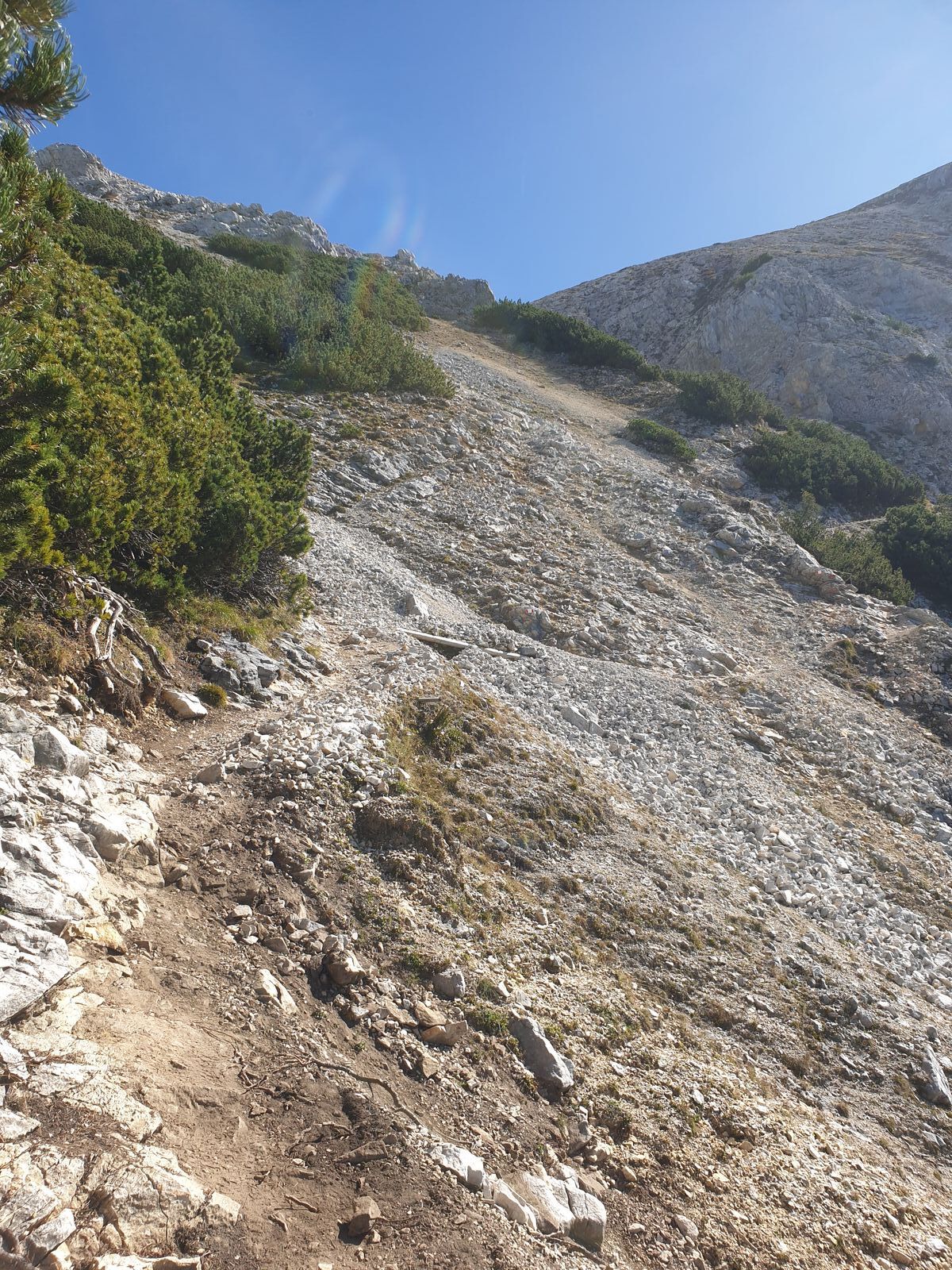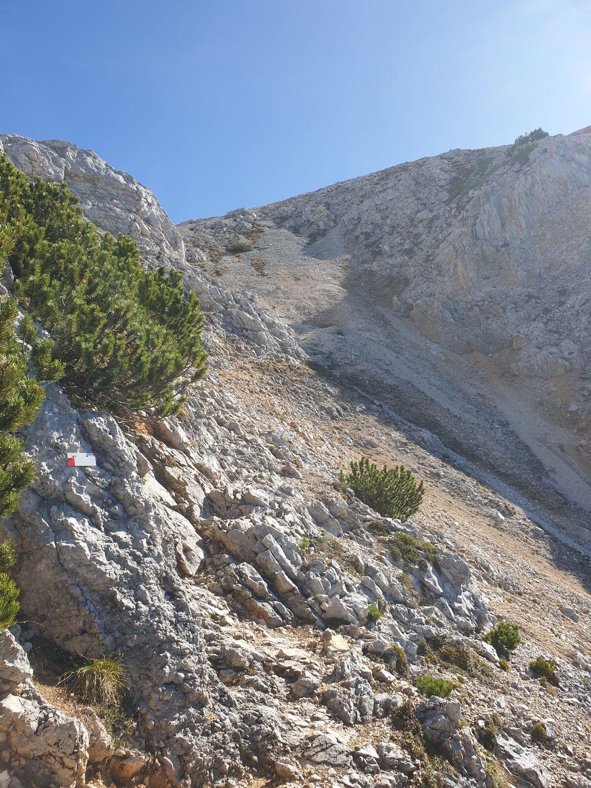 Wetter war ideal. Bei zeitigem Start liegt der gesamte Aufstieg durch die Latschen schön im Schatten. Der Abstieg war dann deutlich schweißtreibender...