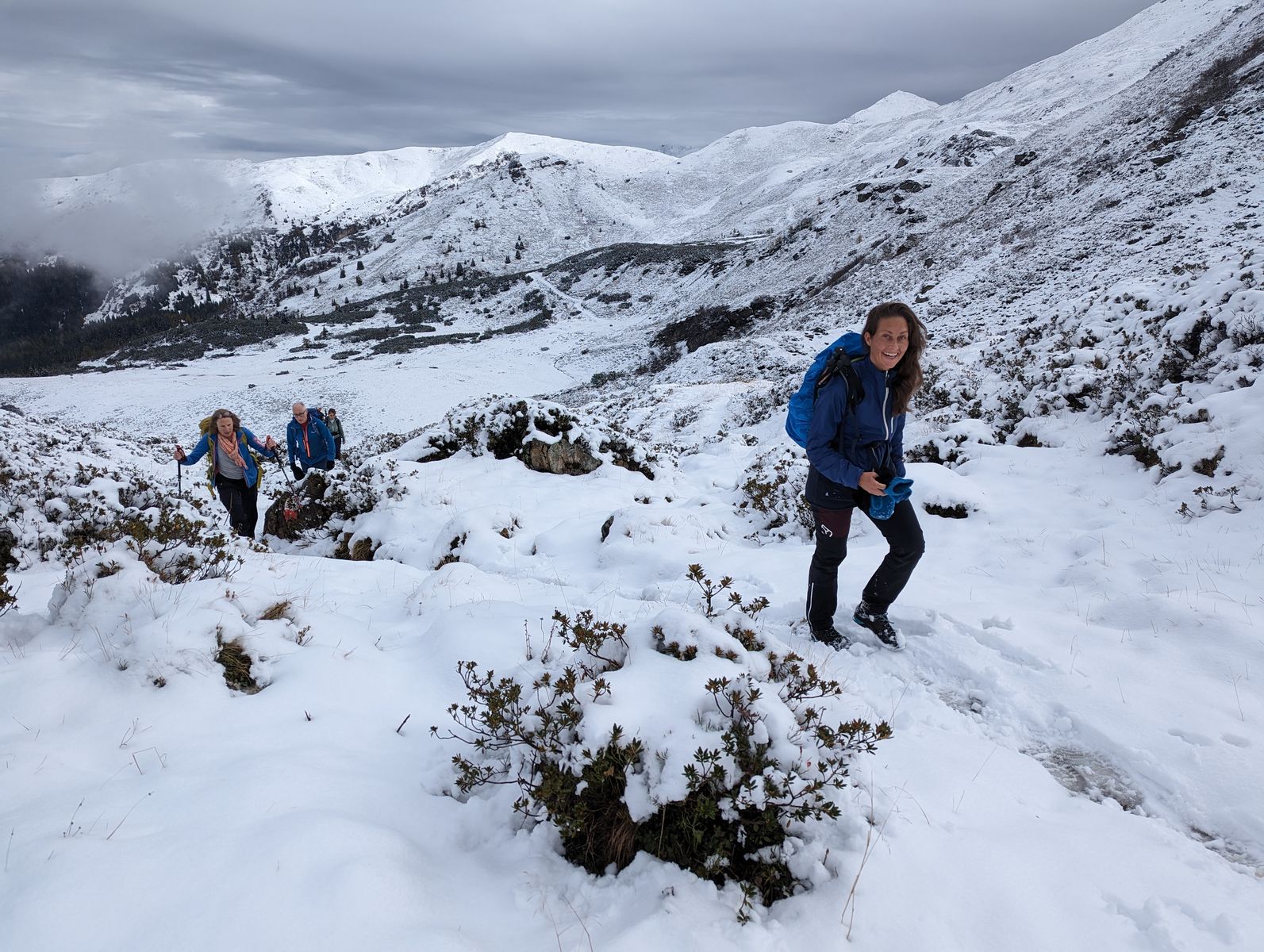 Wunderschöne Frühwinter-Rundtour oberhalb des Obernberger Sees. In der Nacht auf Sonntag hat es hier bis auf 1500 m geschneit. Eine geschlossene Schneedecke lag ab etwa 1800 m. Auf 2200 m hat es etwa 10 cm Schneehöhe.
