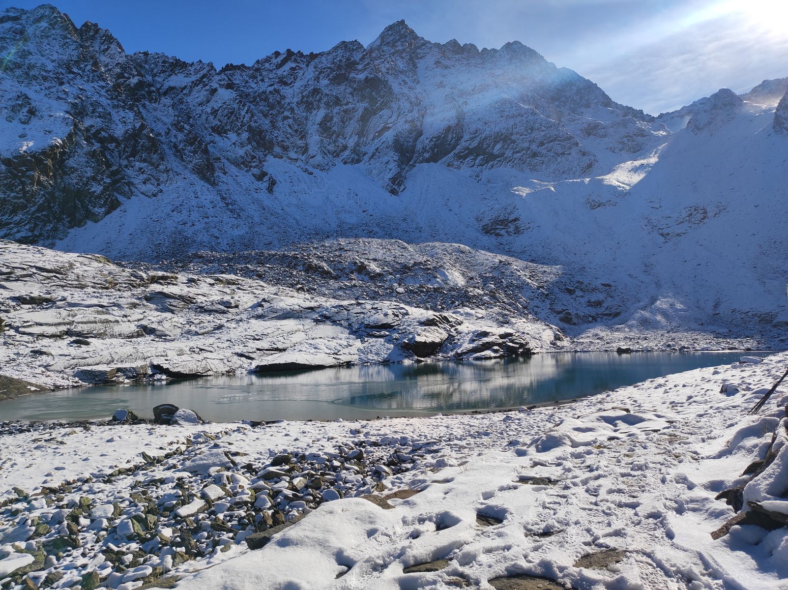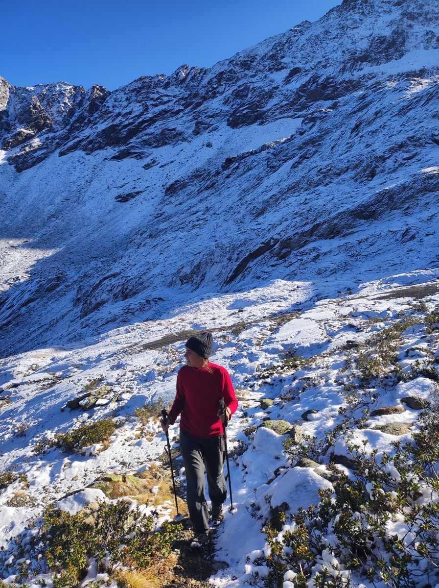 Gestern sind wir ins Ötztal und haben bei fantastischen äußeren Bedingungen eine herbstliche Tour erlebt wie sie schöner nicht sein kann. Es hatte bis auf etwa 2000 Meter heruntergeschneit und schattseitig hielt sich der Schnee auch, während Süd- und Westhänge am Nachmittag schon bis etwa 2800 Meter wieder aper waren. Für unsere Tour hatte der Schnee aber eh wenig Relevanz, da es auch am höchsten Punkt maximal 5cm waren.