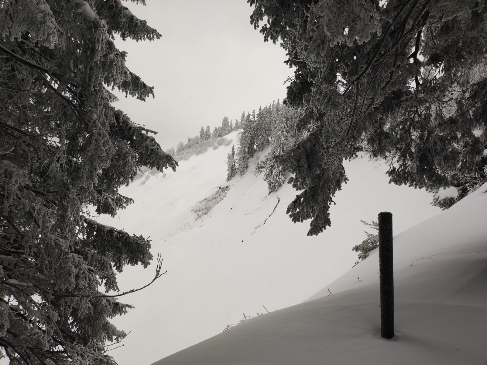 3/4: Die herrlich vereisten Fichtenwälder bereichern die Tour ungemein.