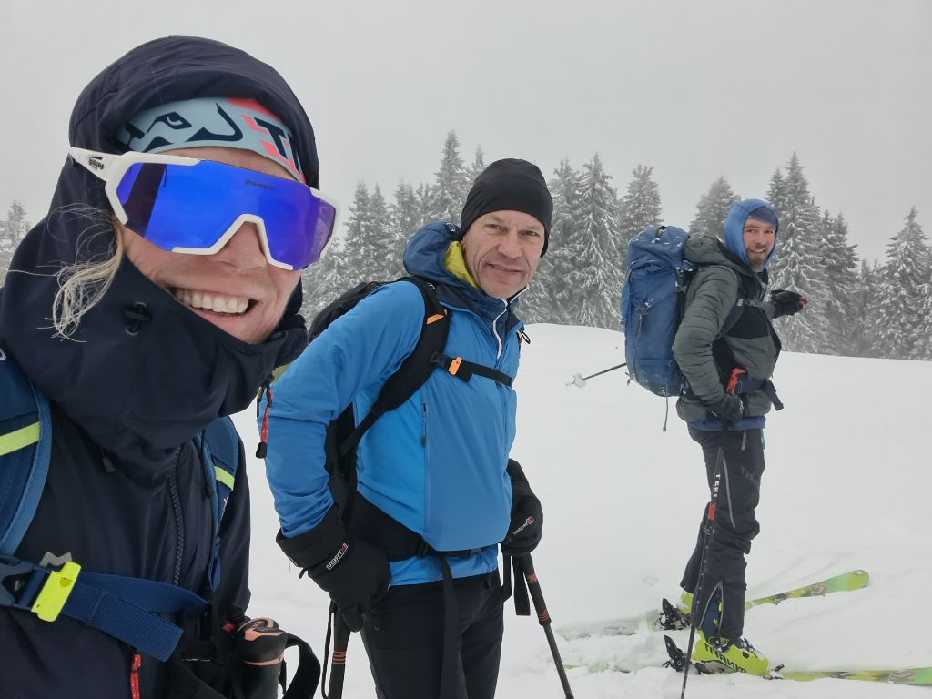 Während wir am Samstag im 100 Hm höher gelegenen Soilach (ca 800m) gestartet sind (hoch und runter komplett mit Ski), ging es heute an der Lederstube (700m) los. Zwar muss man da etwa 10 Minuten tragen, aber dafür entfällt bei der Talfahrt der Richtung Soilach nötige Gegenanstieg.