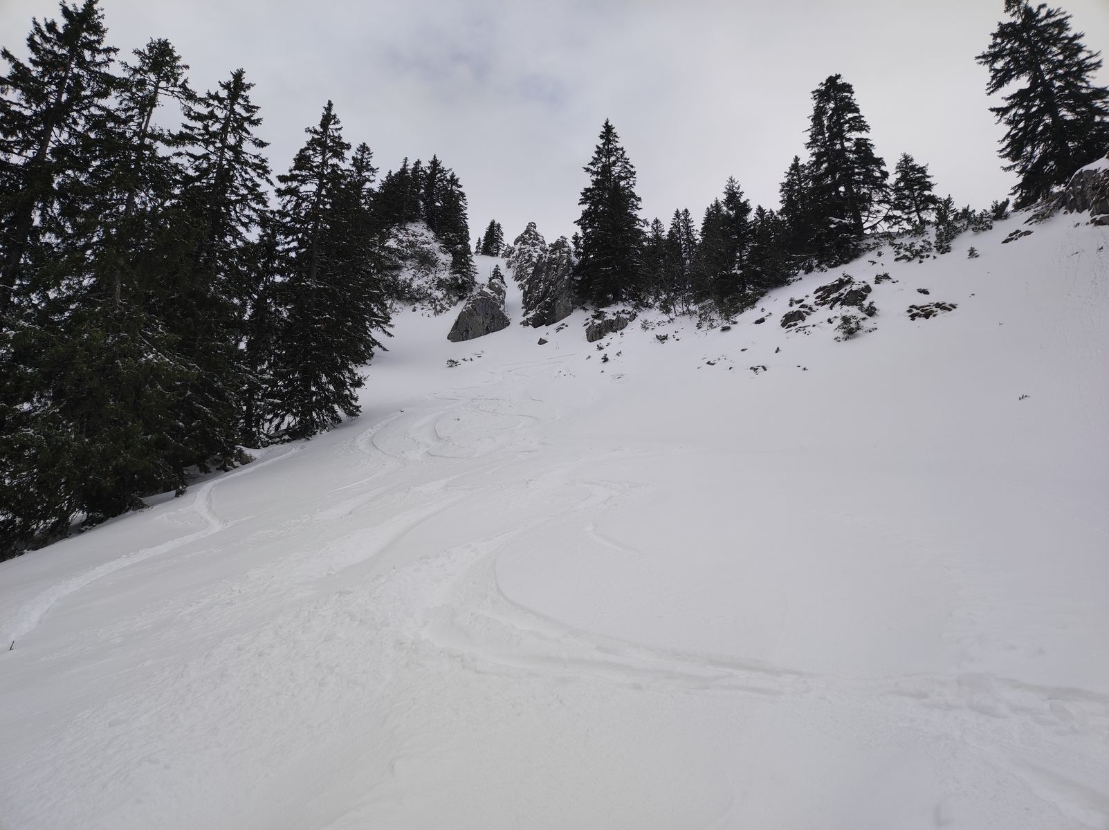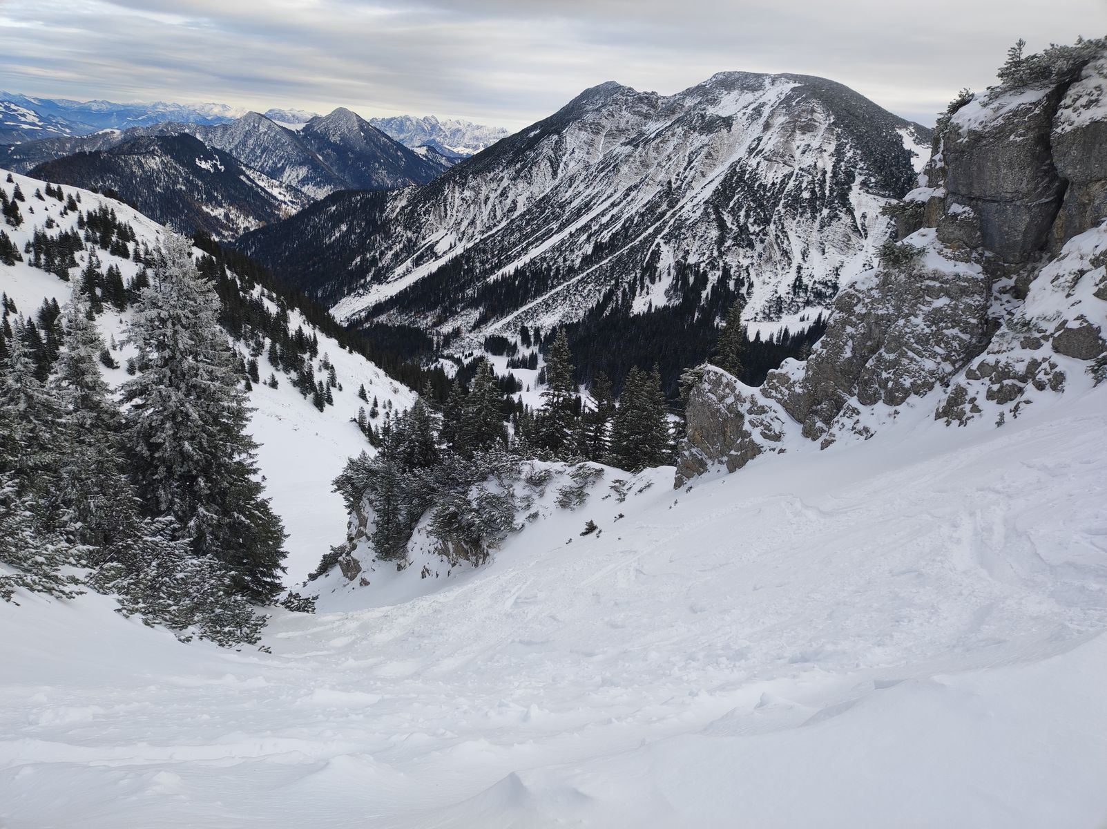 Dennoch Gefahrenhinweis: In der Ostflanke der Bodenschneid sind einige Gleitschneerisse erkennbar, die nach den Schneefällen aber vermutlich wieder verdeckt sein werden.