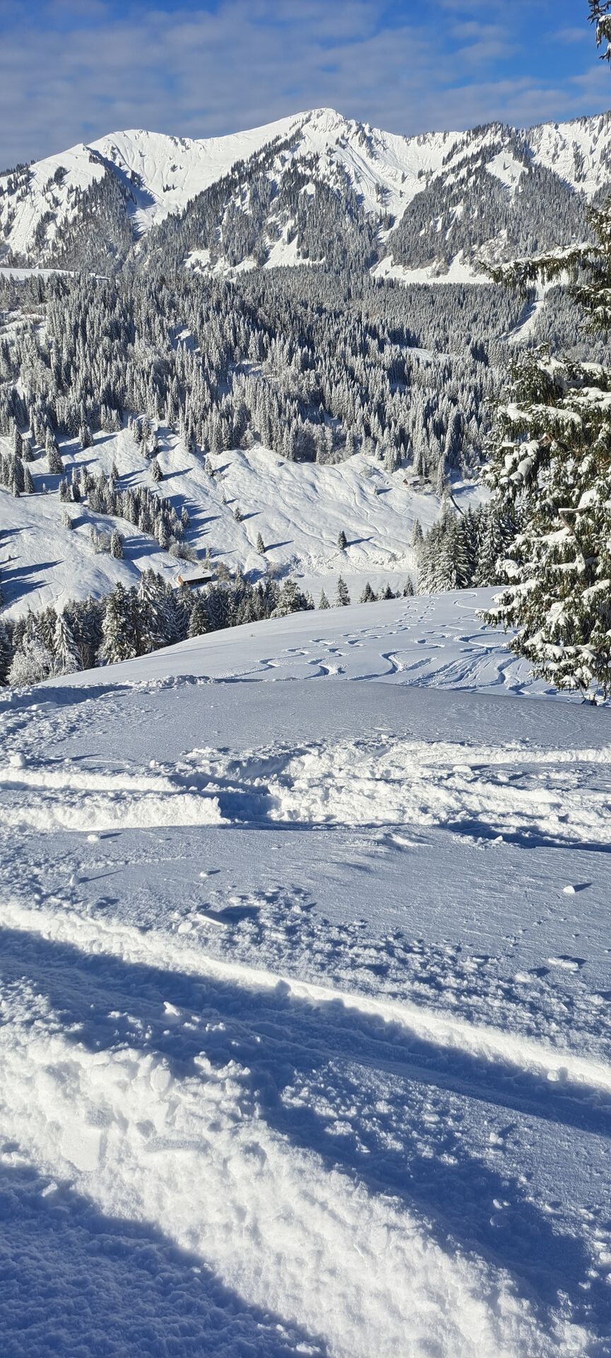 Unten genug, ab 1000m viel Schnee. Oben vlt 40cm neu. Abfahrt in beide Richtungen top ohne Bodenkontakt, aber nach heute schon stark eingefahren, v.a. O nach Sigiswang