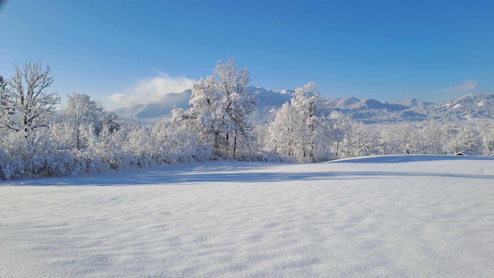 In Lenggries war Winterwonderland angesagt. Die schönen alten Bäume am Weg sahen wie verzaubert aus. Manche haben sich aber schon sehr bedenklich gebogen.