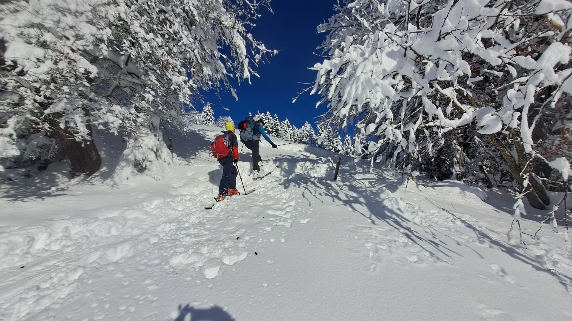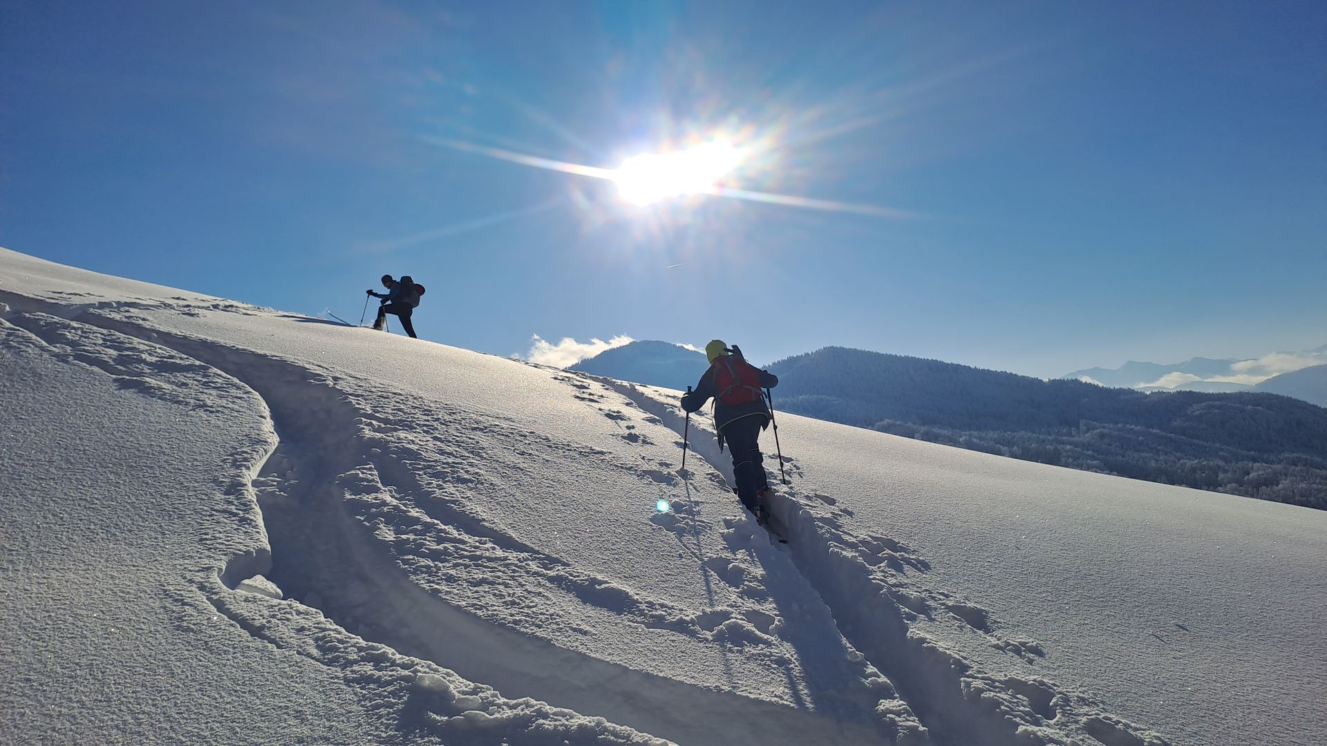 Südseitig wurde der Schnee aber bereits am späten Vormittag recht schwer. Für den tiefen Schnee teilweise zu flach.