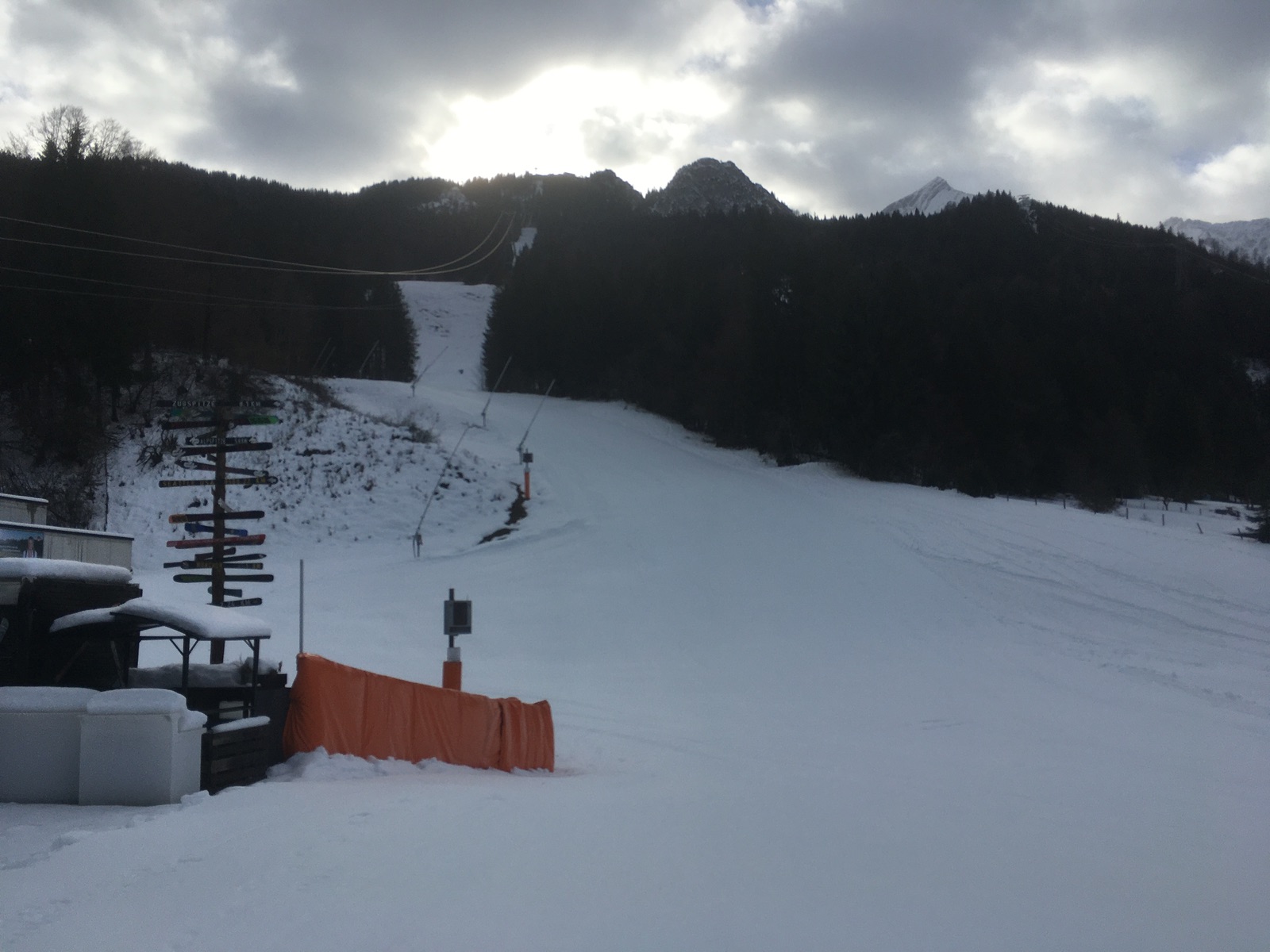 Angesichts des Schneeaggregatzustands "Kunstschnee" oder "eisig" gibt es aber Chancen, dass es auch das Tauwetter und den Starkregen übersteht. Wird dann halt nicht weicher. Vielleicht nach klarer Nacht schon Harscheisen mitnehmen?