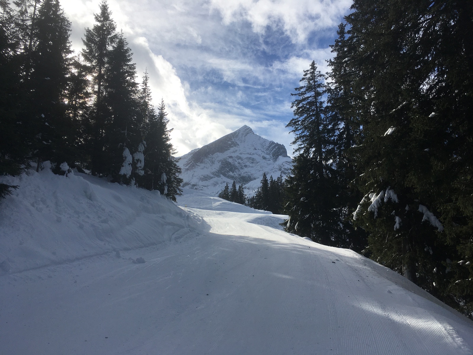 Nach dem Regen in der Nacht befürchtete ich heute im freien Gelände übelst durchfeuchteten Schnee. So gab es nur eine Tour im (noch geschlossenen) Liftgebiet von Garmisch. Aufstieg von der Kreuzeckbahn-Talstation (dorthin mit dem Ortsbus ab dem Bahnhof Garmisch) über die Olympiaabfahrt bzw. die Skitourenaufstiegsspuren im freien Gelände (immer wieder bemerkenswert, wieviele Varianten es da gibt) - Kreuzeck - Hochalm.