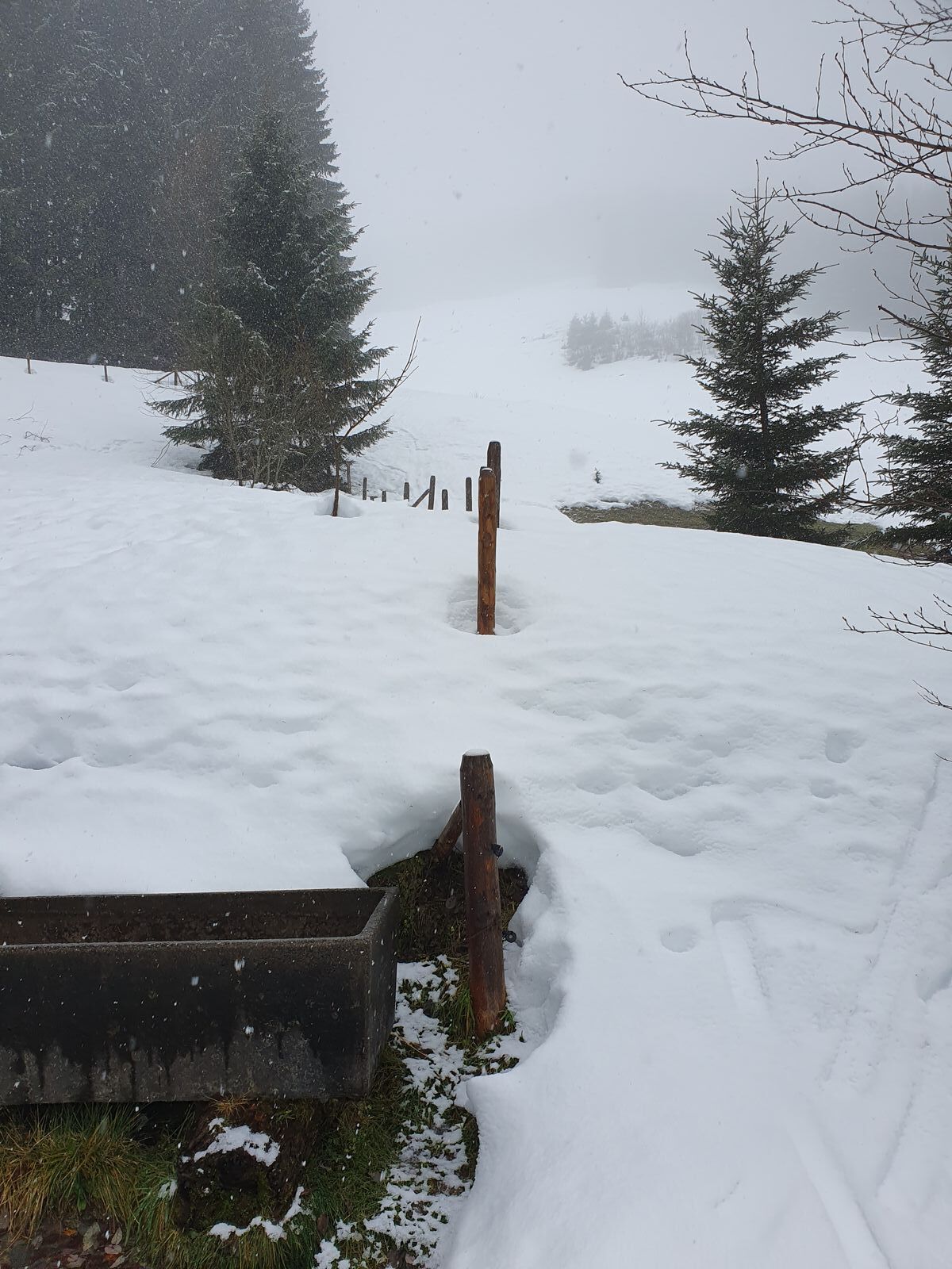 Wetter: Schneeregen unten am Start (auf ca. 920m) und ab ca. 1100m Schnee, später starkes Schneegestöber.