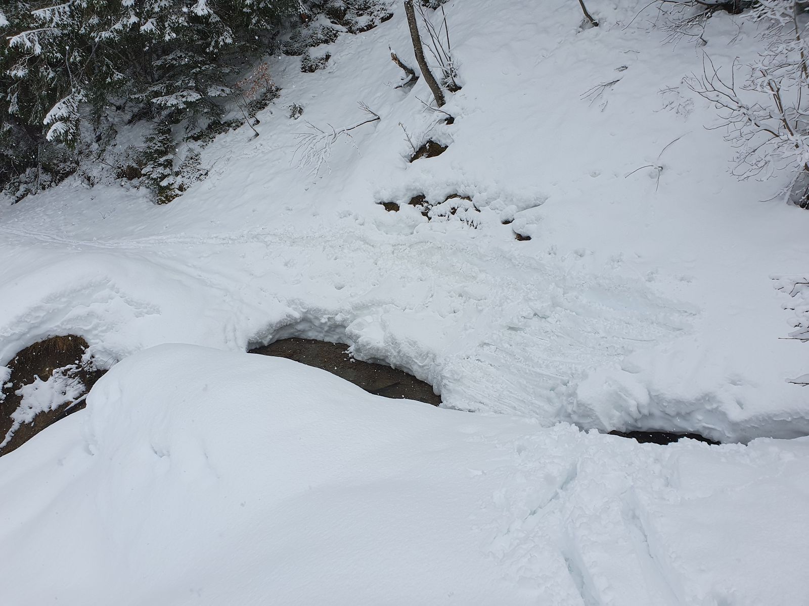 Bergab andere Route als geplant weil fast zeitgleich die Pistenraupen alles zu einem Acker umgepflügt haben.