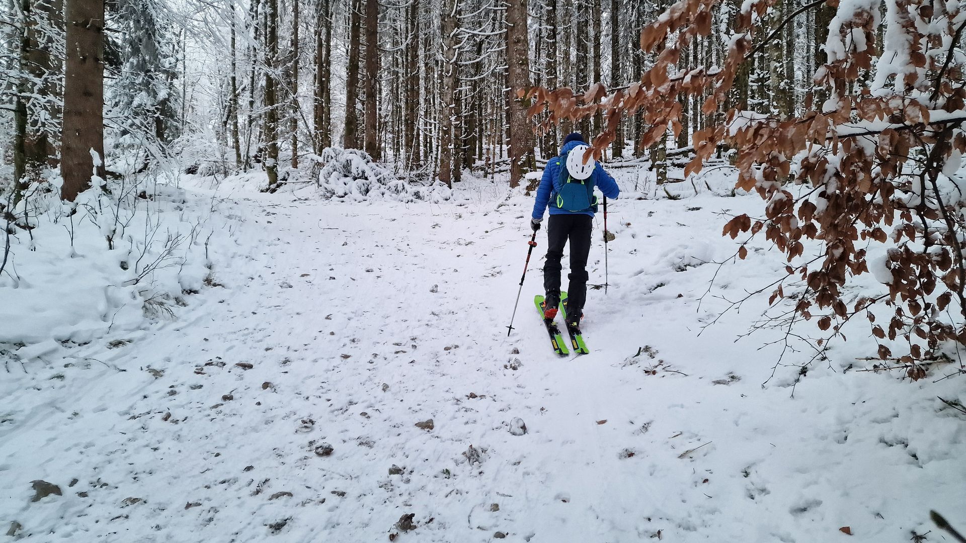 Im untersten Teil der Forststraße haben wir die Ski wenige Minuten getragen, weil dann doch zu viel Steine herumlagen.