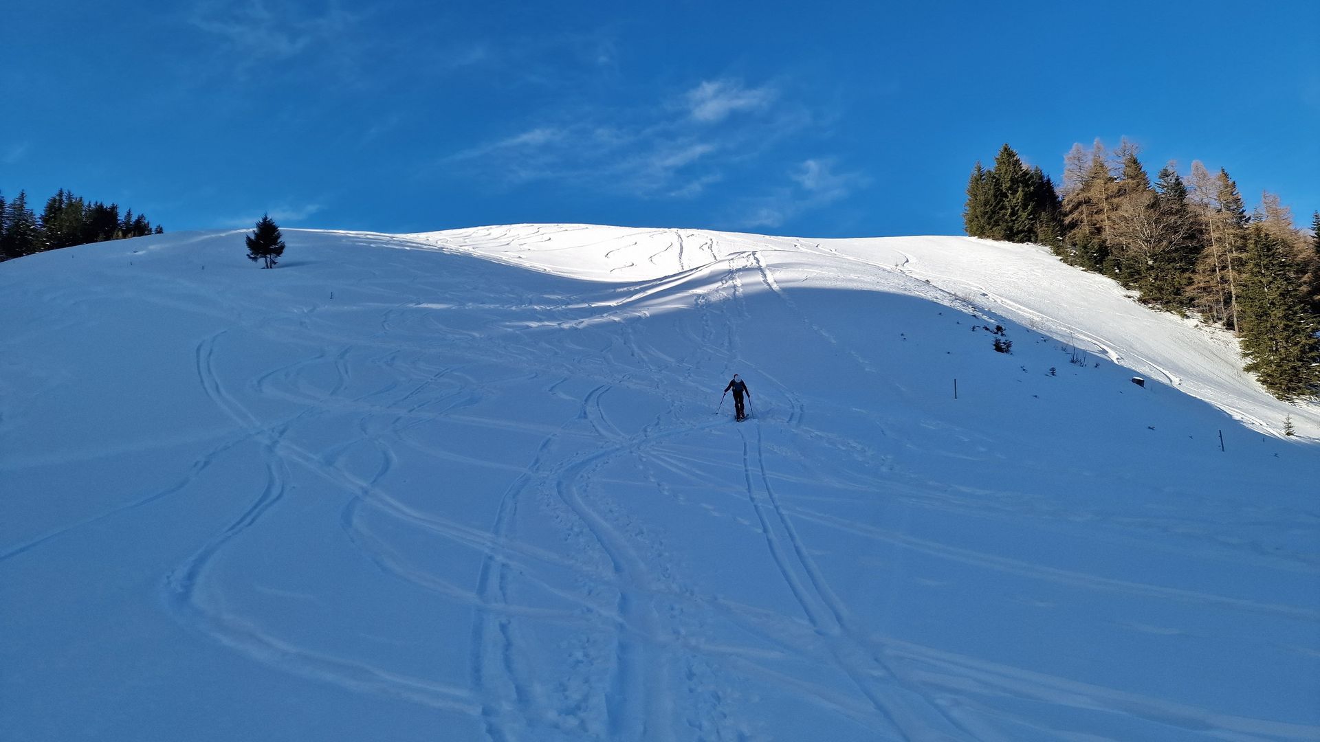 Perfektes Pulver in den Nordosthängen des "Seelacher Kogels". Da würde sich ein mehrfaches Auffellen lohnen, wenn man Zeit hat. Sind halt leider nur maximal 140 Höhenmeter Abfahrt.
