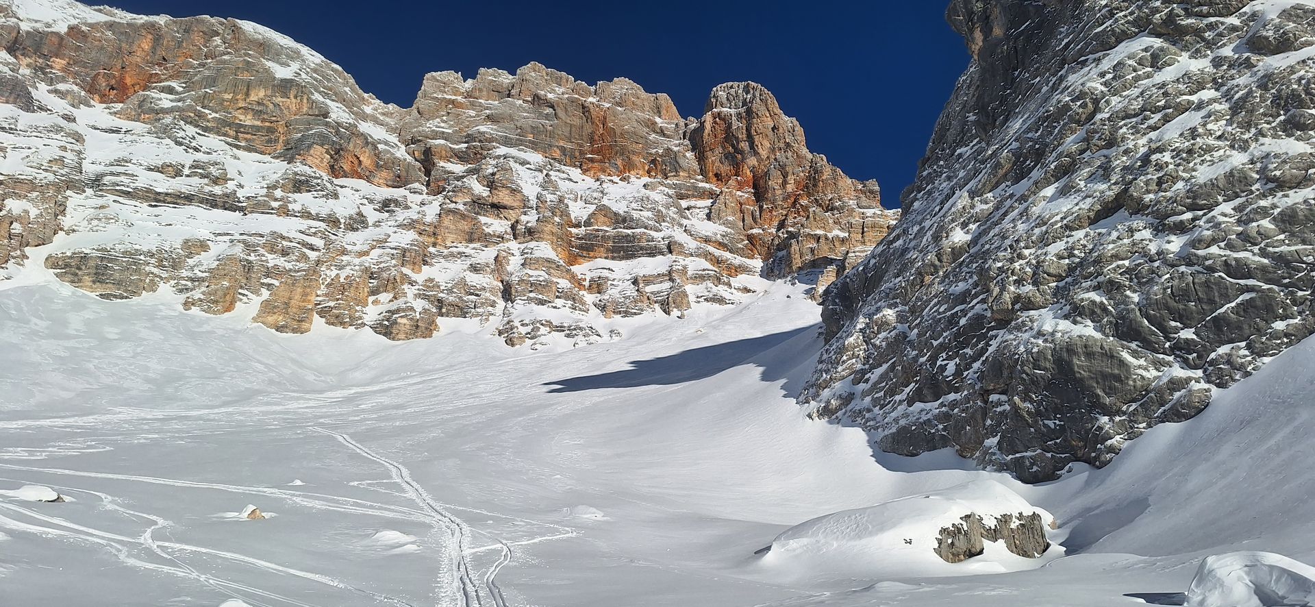 Steiles, sehr beeindruckendes Dolomitenkar, das von Osten oder auch von Westen begangen werden kann.