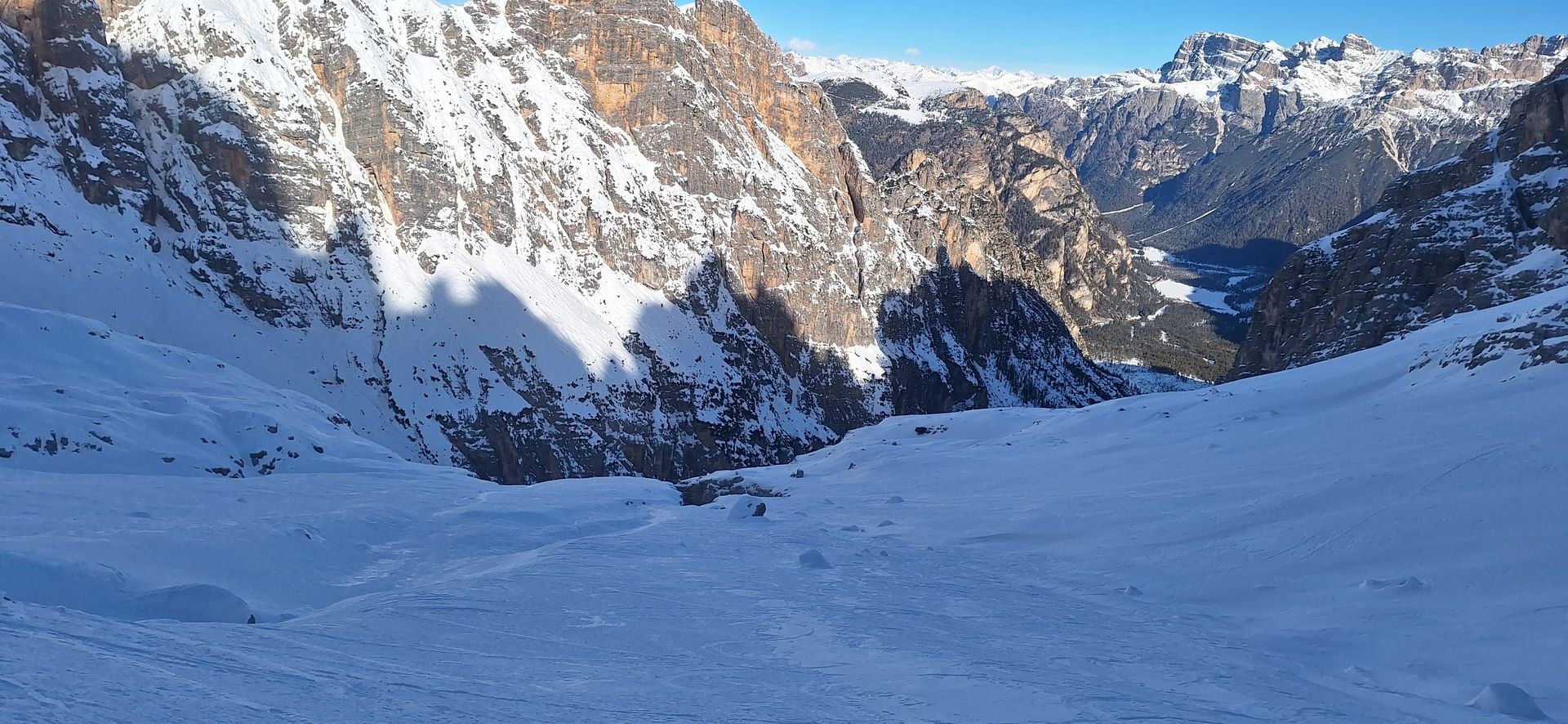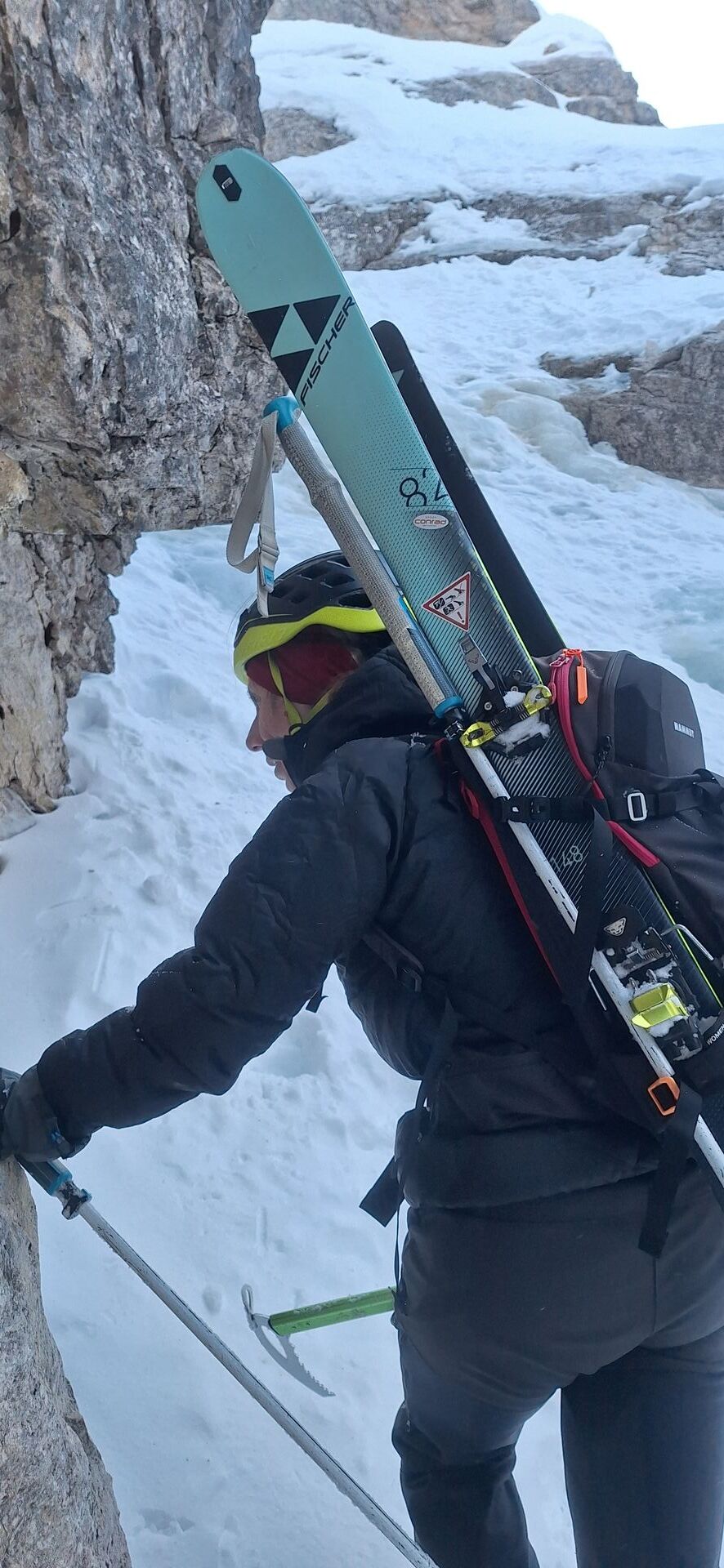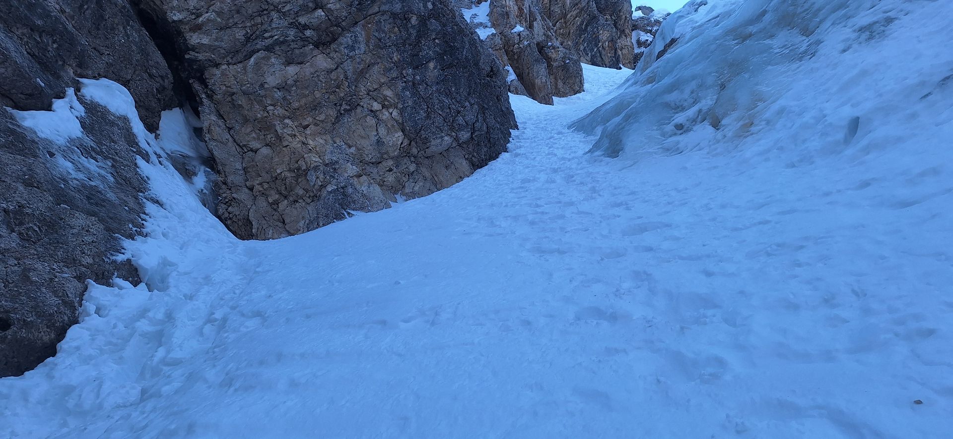 Am Austieg der Rinne, im Circ de Cristallo sind es dann noch 700hm zur Scharte, Die Neigung beträgt ca. 30° bis 35° und wir waren verwundert dass wir fast allein unterwegs waren.