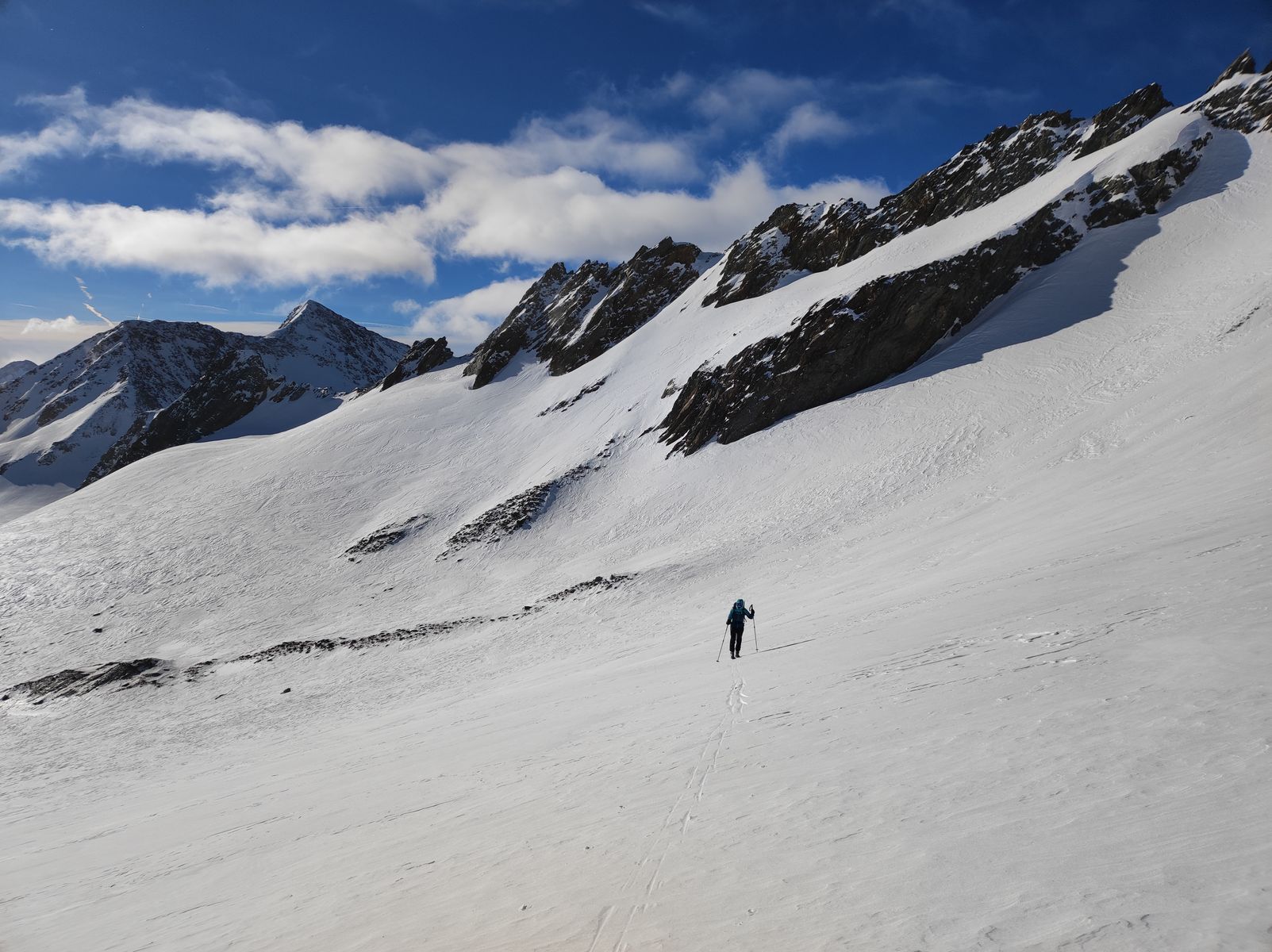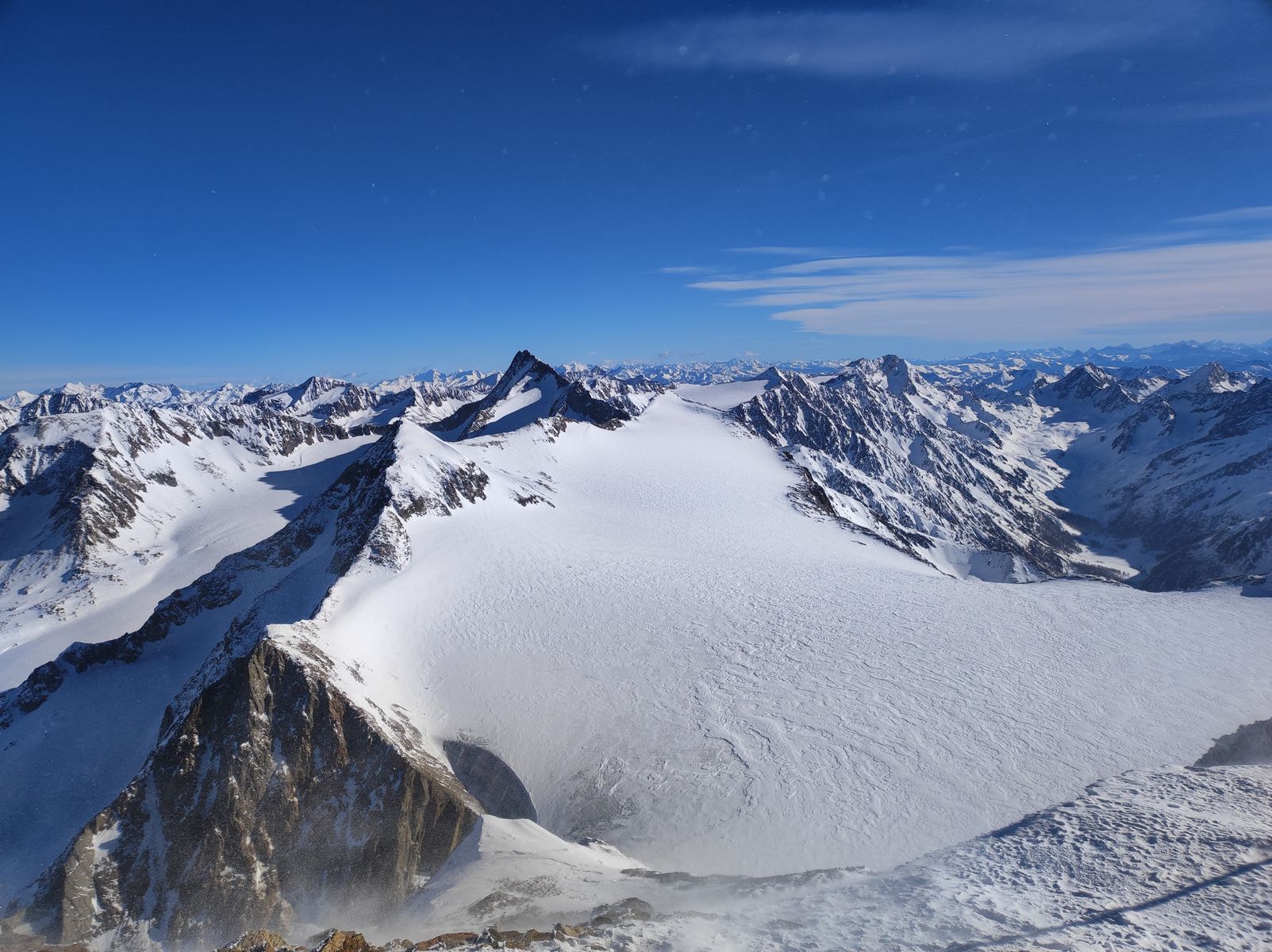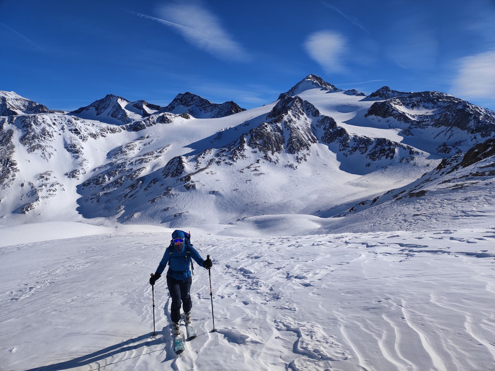 Eine Anmerkung zur Schwierigkeit der Tour: Nach alpinen Begriffen eher einfach, geht bei guten Bedingungen nicht über Hochtouren WS+ hinaus. Spitzkehren braucht es eher selten. Keinesfalls unterschätzen darf man abgesehen von den hochalpinen Herausforderungen (Gletscher, Wetter etc.) die enormen Distanzen, die zudem in großer Höhe zurückgelegt werden müssen.