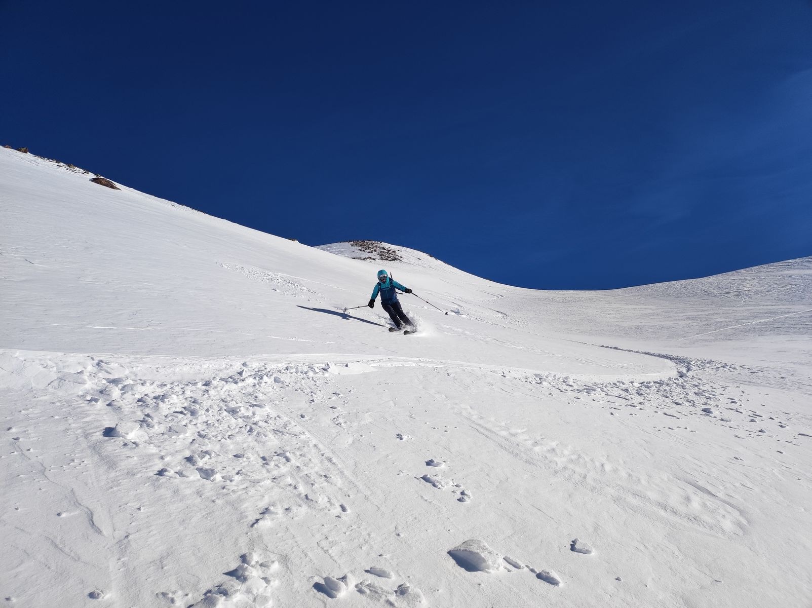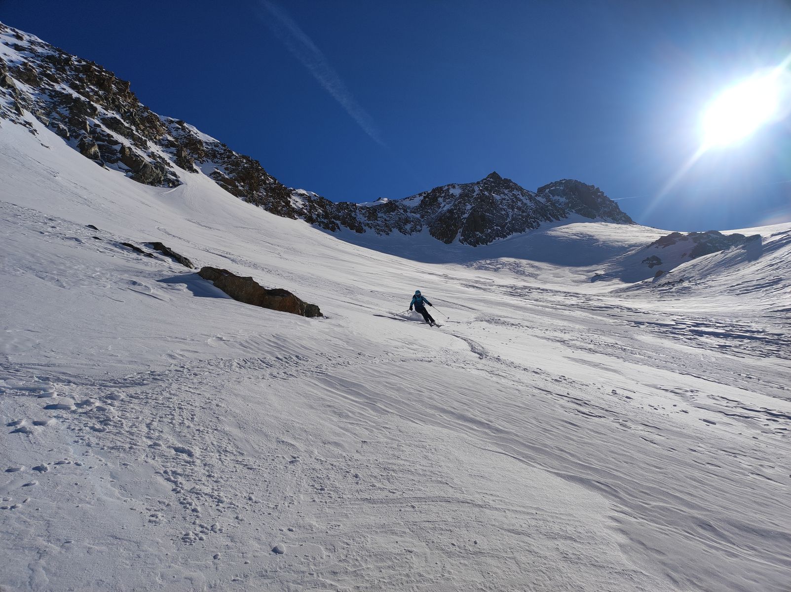 5: Guter Schnee in den steilen Mulden unter dem Gletscher.