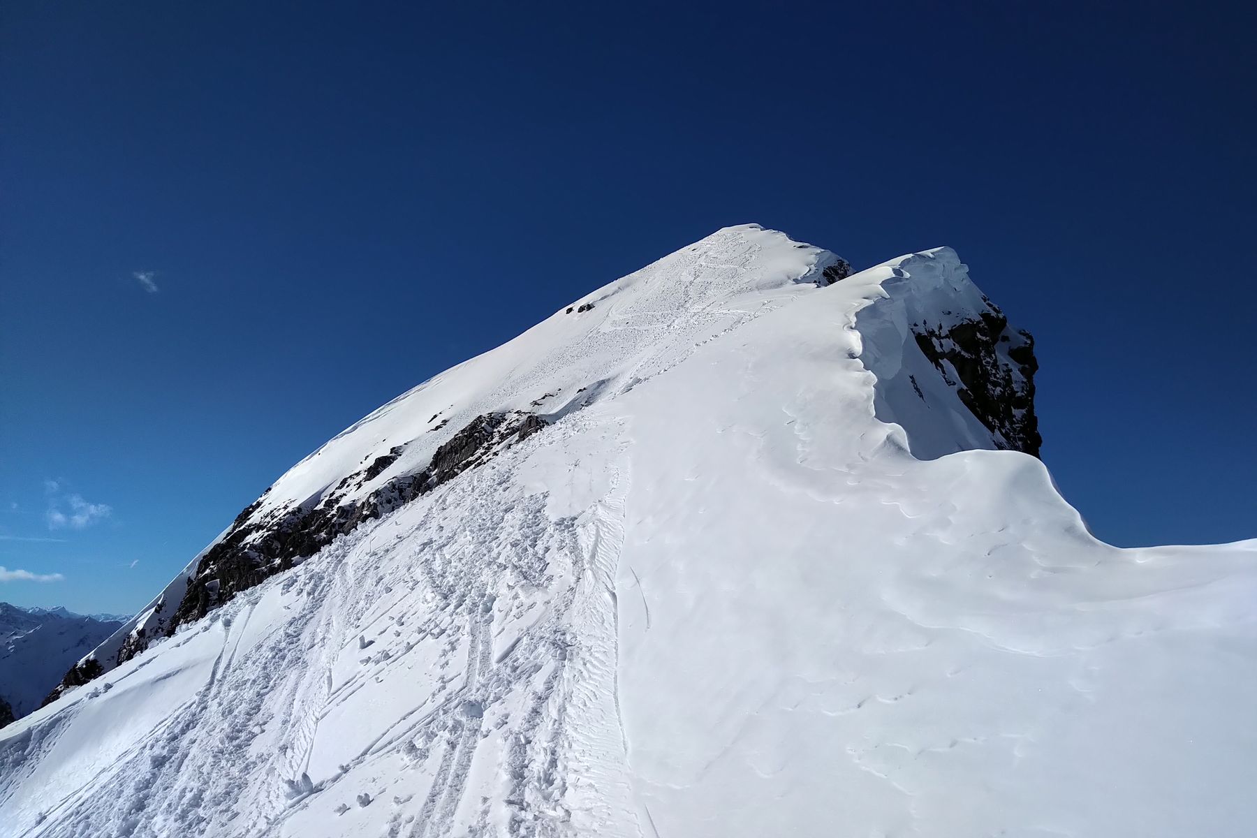 - beim letzten Steil-Aufschwung zum Gipfel war uns der Schnee zu weich, das haben wir lieber sein lassen (nicht empfehlenswert zu unserer Uhrzeit)