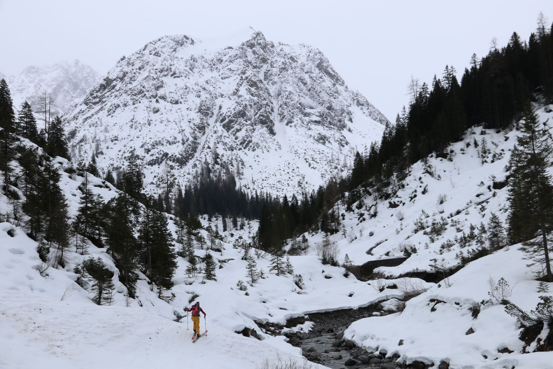 Der Plan lautet: Tag eins von Namlos auf den Tschachaun zu steigen und dann auf der Anhalter Hütet zu übernachten. Am zweiten Tag soll es dann über das Grübigjoch und den anschließenden, schmalen Kamm auf die Namloser Wetterspitze zu erreichen und über deren gewaltigen Südwesthang und die Alpe Fallerschein abzufahren.