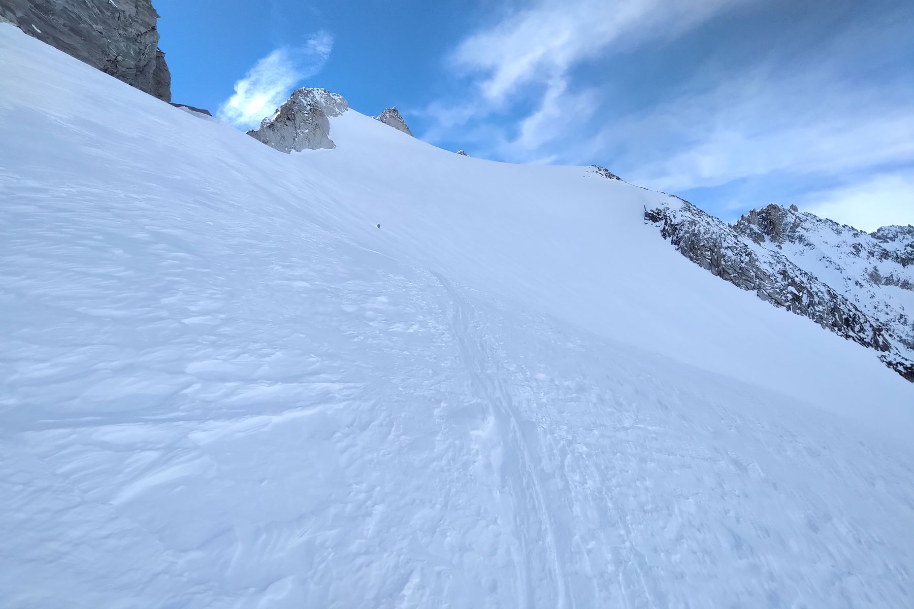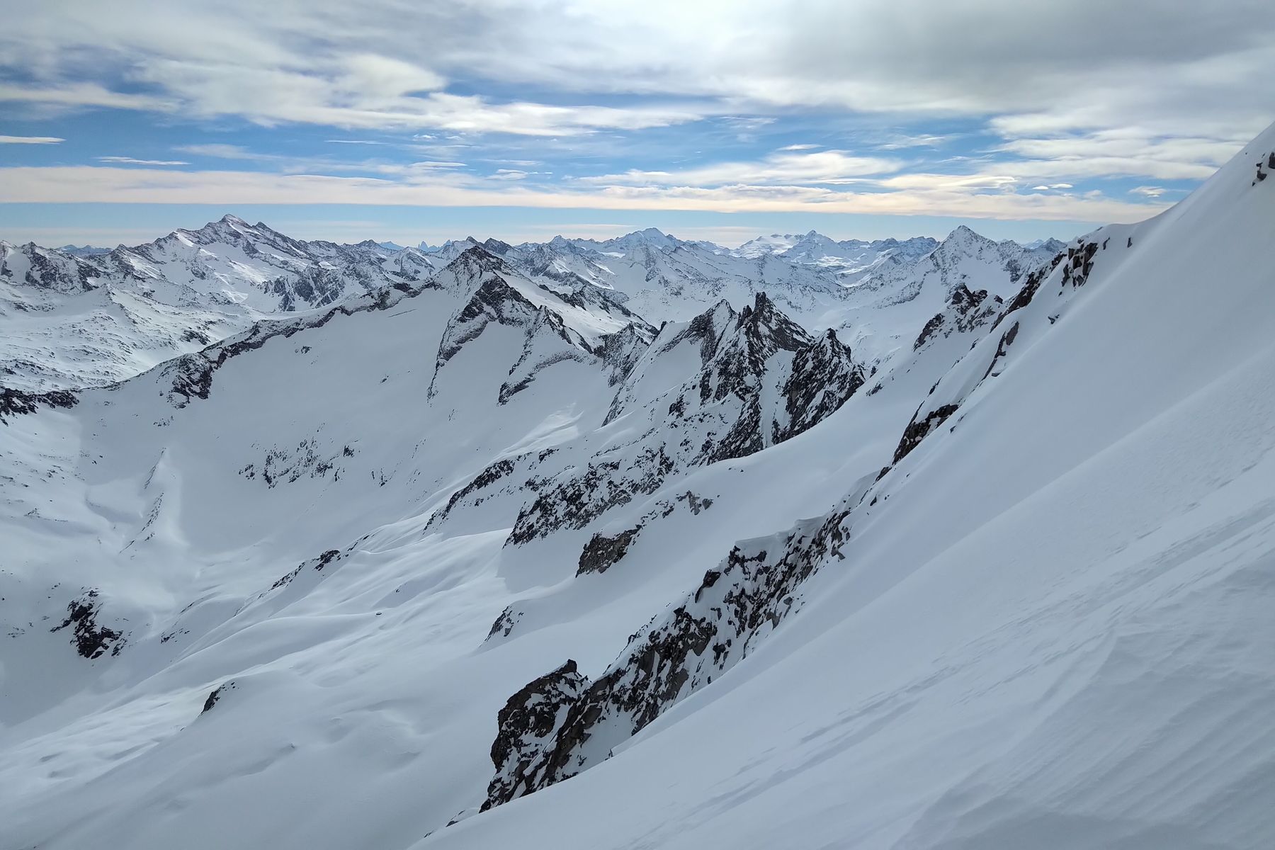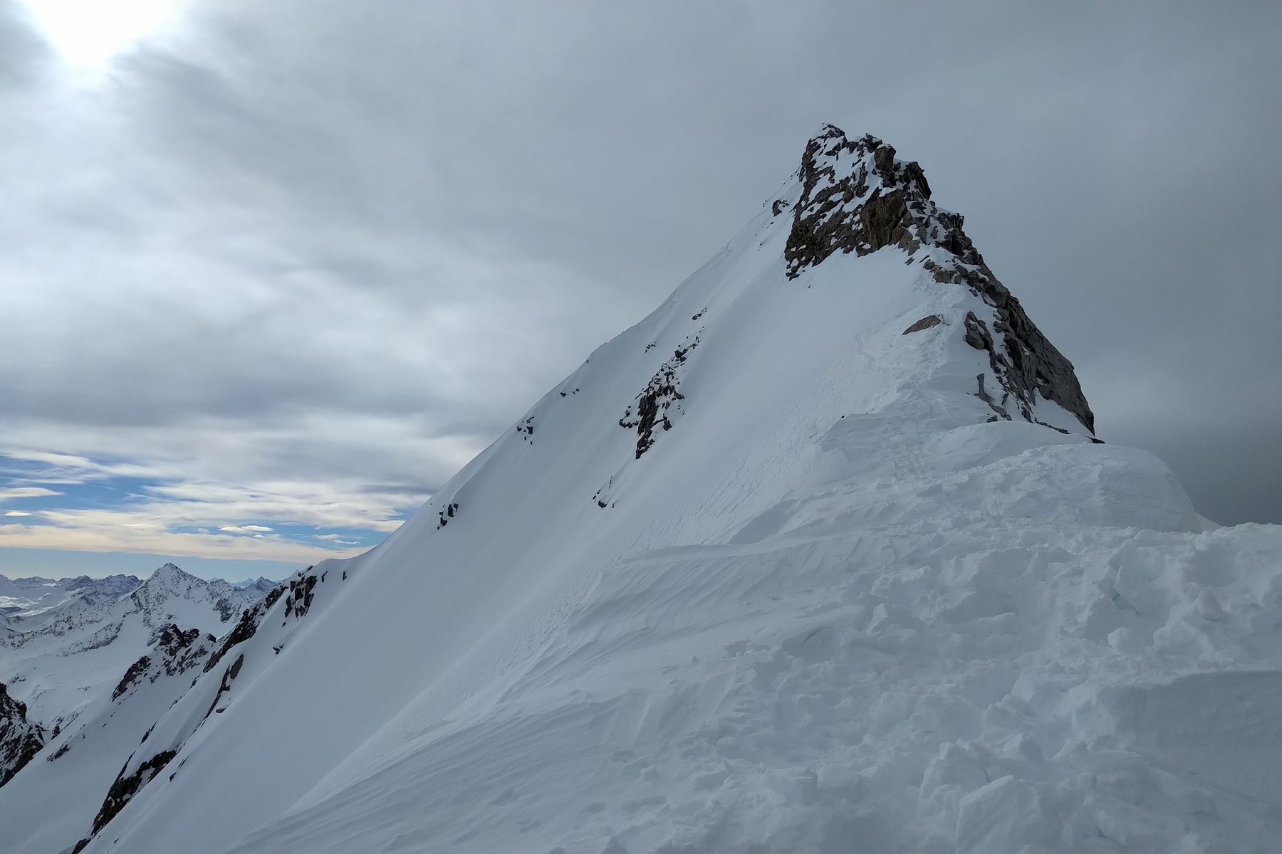 Am Gipfelgrat waren auch Stapfspuren zu sehen, aber das wollte ich alleine nicht machen. Ich bin ein anderes Mal 10 Meter unter dem Gipfel umgedreht - den Gipfelgrat versuch ich ein andermal mit Pickel, Steigeisen und Seil (und Gesellschaft).