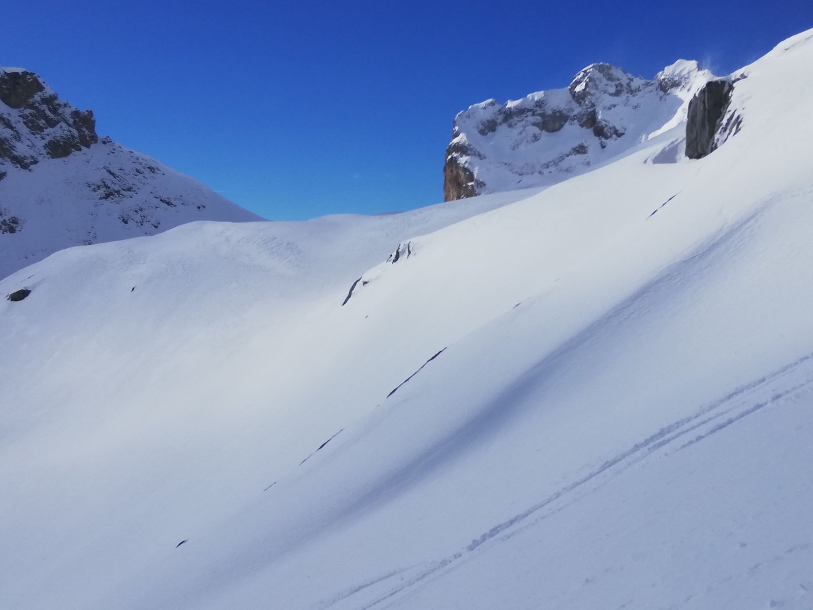 Nochmal wie schon letzten Sonntag auf die Rofanspitze, etwa 20cm Neuschnee, Abfahrt nach Süden bis auf etwa 1920m, Wiederaufstieg zur Grubascharte und weiter zum Skigipfel des Roßkopfes.