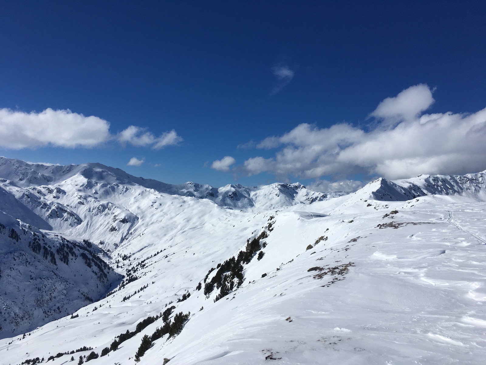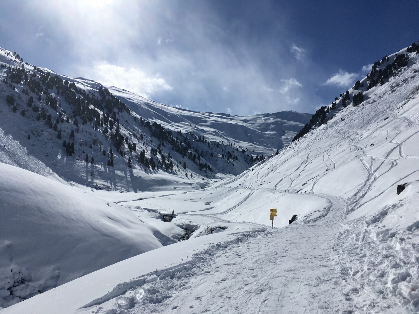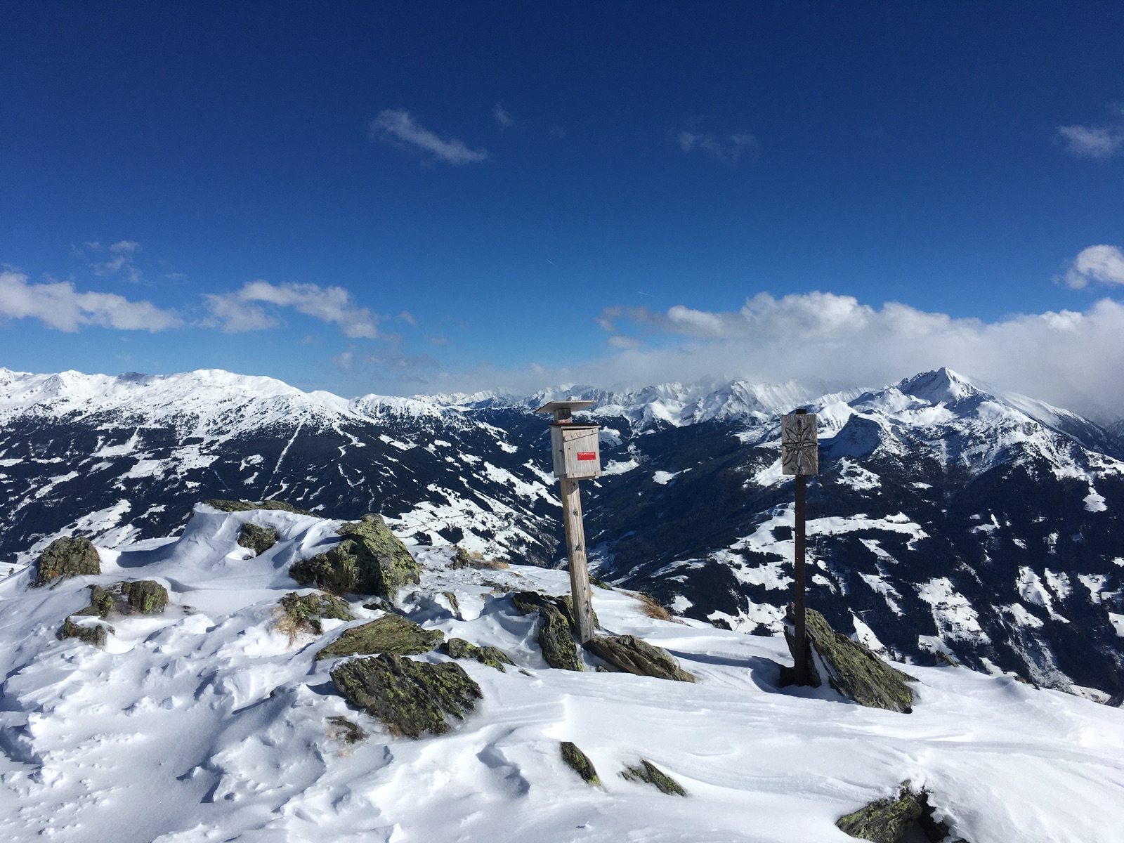 Gestern habe ich den wenig spektakulären, aber aussichtsreichen Rauhenkopf in eine Ski-Überschreitung von Hochfügen ins Zillertal eingebaut: Von Fügen mit dem Skibus nach Hochfügen - das spart im Übrigen auch die gestern Vormittag wenig entspannte Parkplatzsuche in Hochfügen. Dann das Tal hinein über den Pfundsalm-Niederleger zum Sidanjoch (unterhalb des Jochs zwei Anstiegsspuren, links wäre wohl kürzer gewesen). Im Gebiet sind alle klassischen Tourengipfel (Marchkopf, Kraxentrager, Gipfel, Roßkopf etc.) angespurt, die Hänge zum Teil gar flächig verspurt. Mit etwas Höhenverlust (aber mit Fellen) ging es dann über die Rastkogelhütte zum Rauhenkopf. Jeweils in Kammnähe ein sehr unangenehmer Wind, ansonsten sonnig und gute Fernsicht außer zum Hauptkamm.