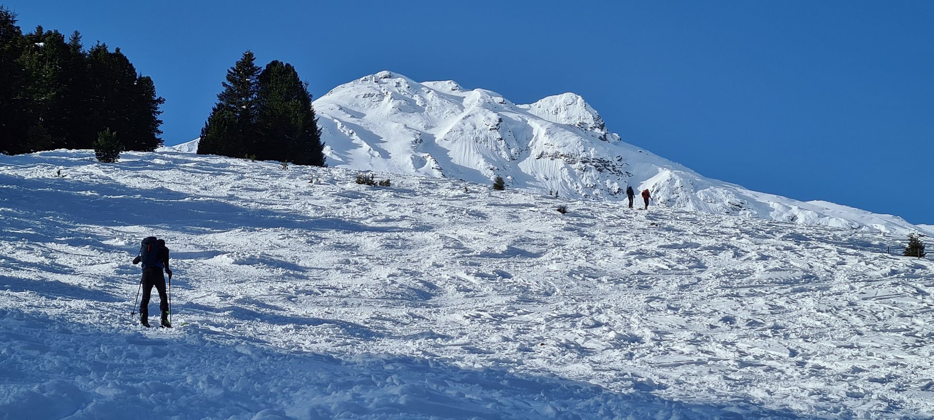 - Gipfelanstieg: Guter Trittschnee. Einige haben Steigeisen benutzt, die braucht es aber für sichere Geher definitiv nicht.