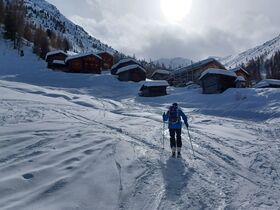 Ein Wechselspiel aus Aufhellungen und teilweise sehr starkem Südwind. Aufgrund der angespannten Lawinenlage in der Gegend ging's heute ganz entspannt über das Bärentälli zum Älplihorn (Wir haben den Grat zum Haupgipfel ausgelassen). Unten recht flach und oben südexponiert, also alles ok. Im Bärentälli grausiger Bruchharsch, danach leicht windbeeinflusster Pulver der sich gut fahren ließ.