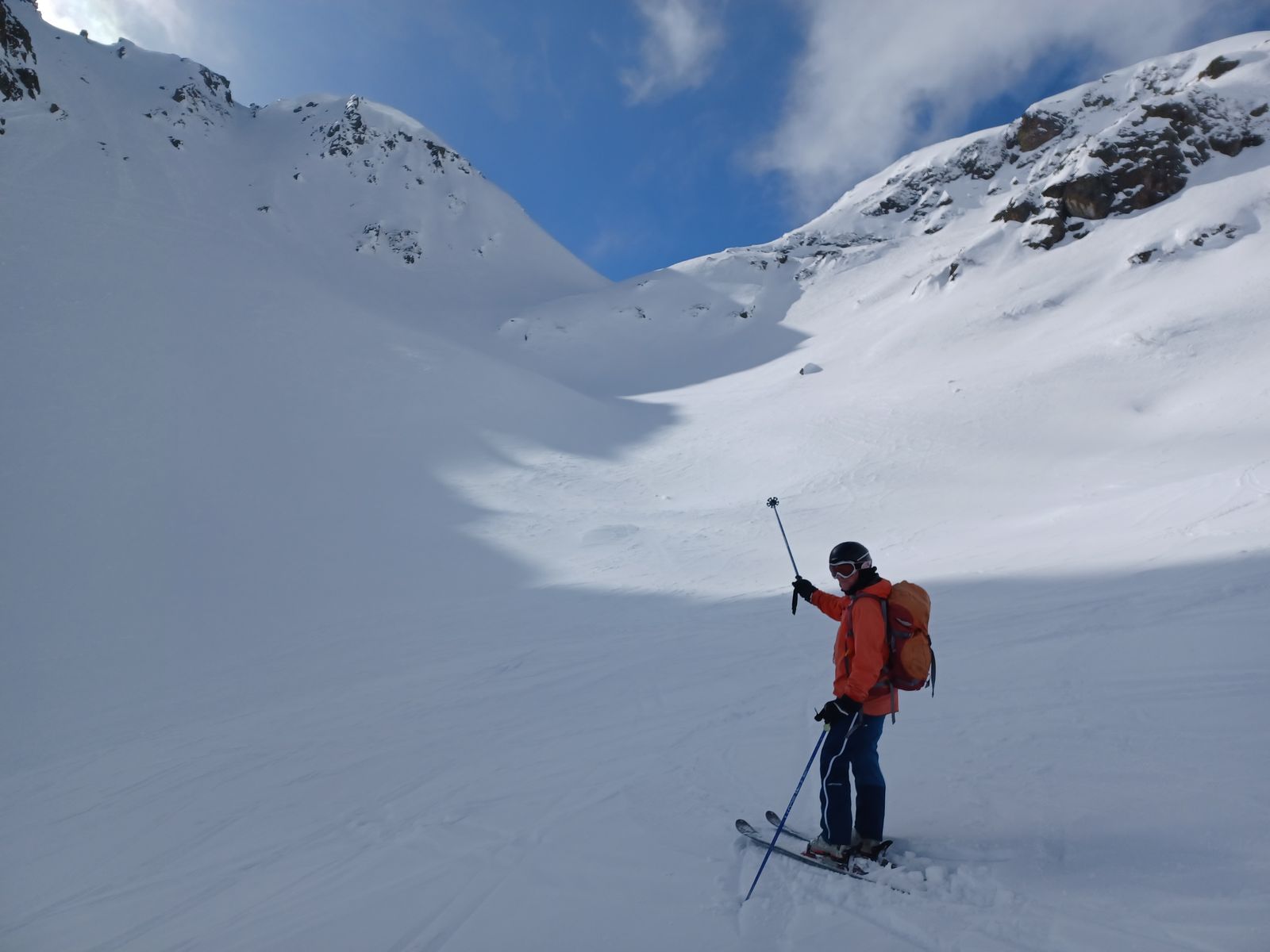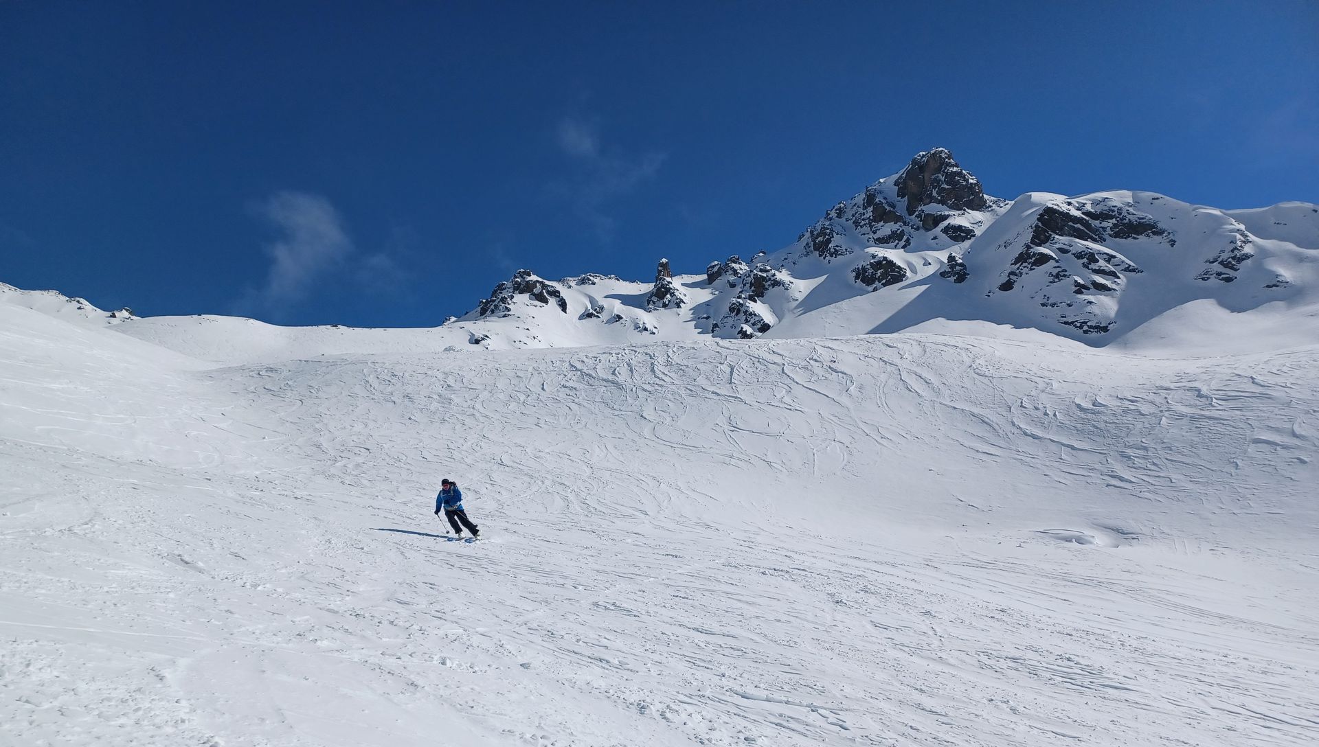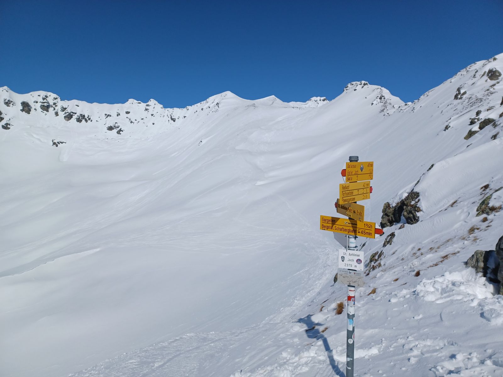 Heute auf der klassischen Runde unterwegs. Auffahrt mit den Bergbahnen in Klosters, Querung und Aufstieg zum Schlappiner Joch im Nebel, Abfahrt nach Gargellen im Sonnenschein. Auf einem breiten eingefahrenen Streifen sehr gute Abfahrtsbedingungen, daneben übler Bruchharsch. Auffahrt mit den Gargeller Bergbahnen und Aufstieg zum St. Antönier Joch im whiteout. Oben hat's dann voll aufgerissen. Abfahrt oben top, nach unten hin Bruchharsch und tiefer Sulz. Es geht mit Ski bis zur Bushaltstelle in St. Antönien.