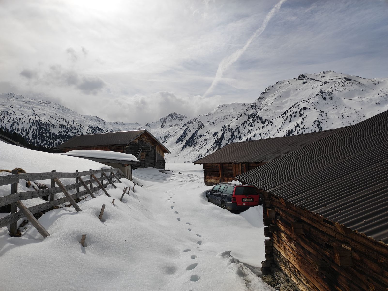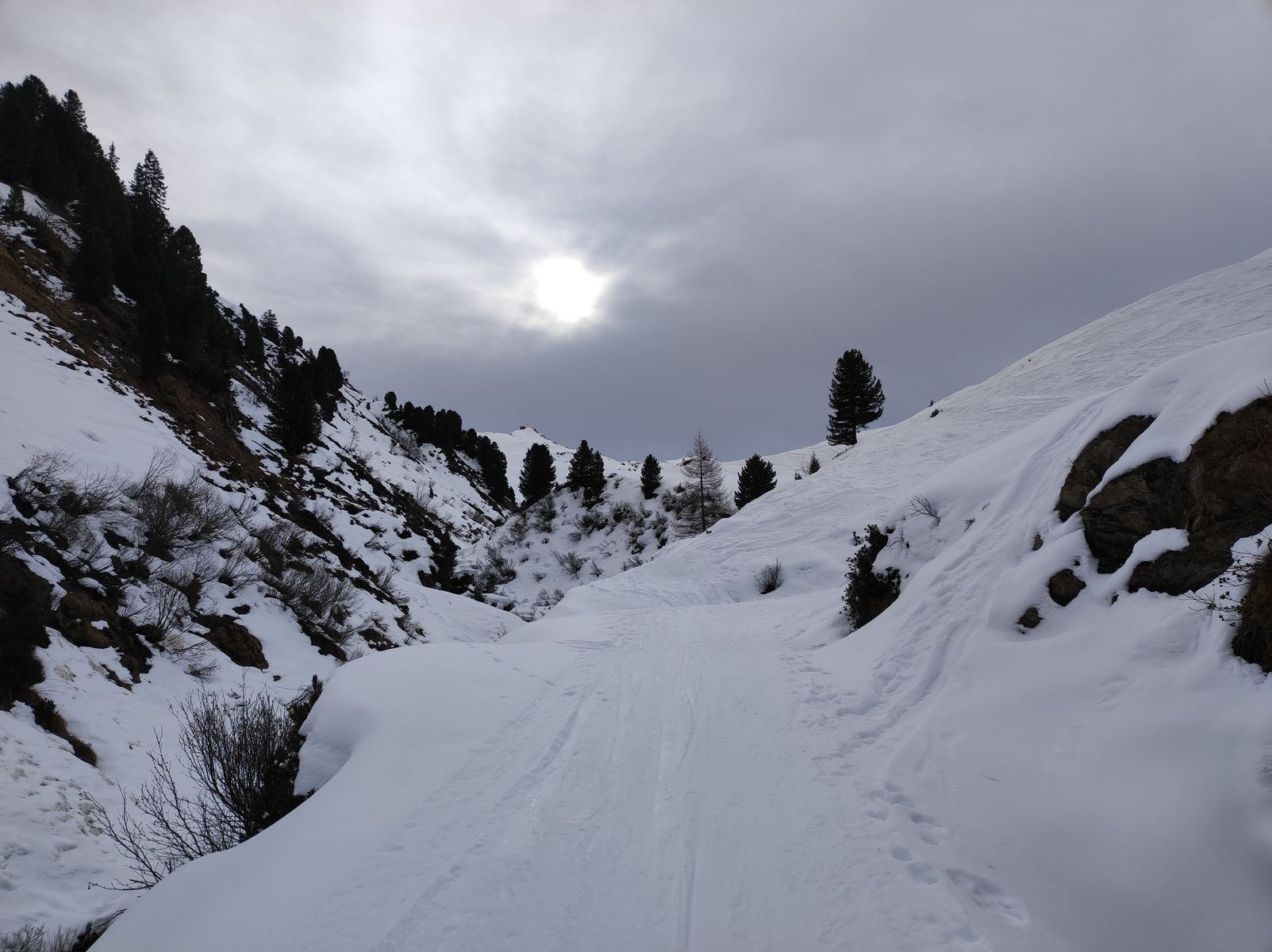 Die wichtigste Info von allgemeinem Interesse ist vielleicht folgende: Sowohl ins Nurpenstal als auch Richtung Weidener Hütte muss man erst mal eine halbe Stunde tragen. Die Ziele hinter der Hütte (Hobarjoch etc) haben eine gute Schneelage, weiter talauswärts schaut es mau aus.