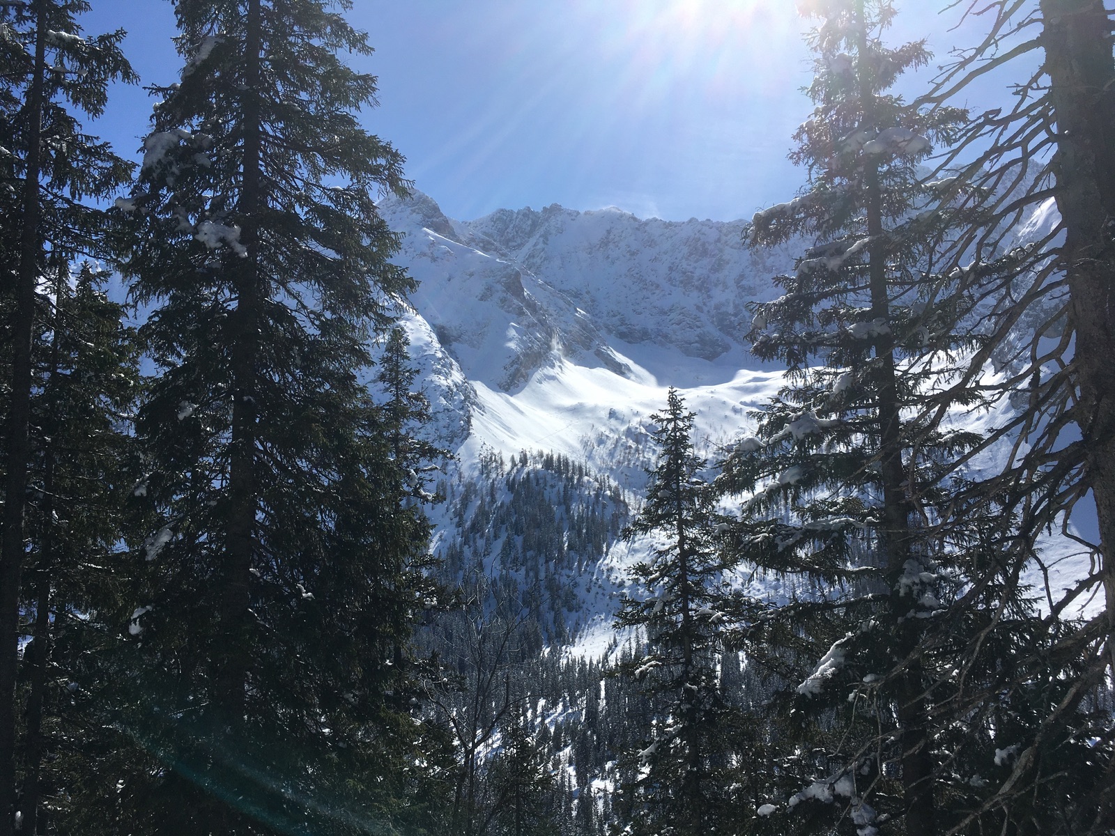 Blick zur Ehrwalder Sonnenspitze von der Abfahrt: