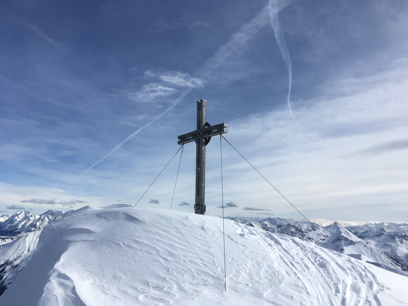 Die Einfahrt ist geschafft - Blick zurück zum Gipfelkreuz: